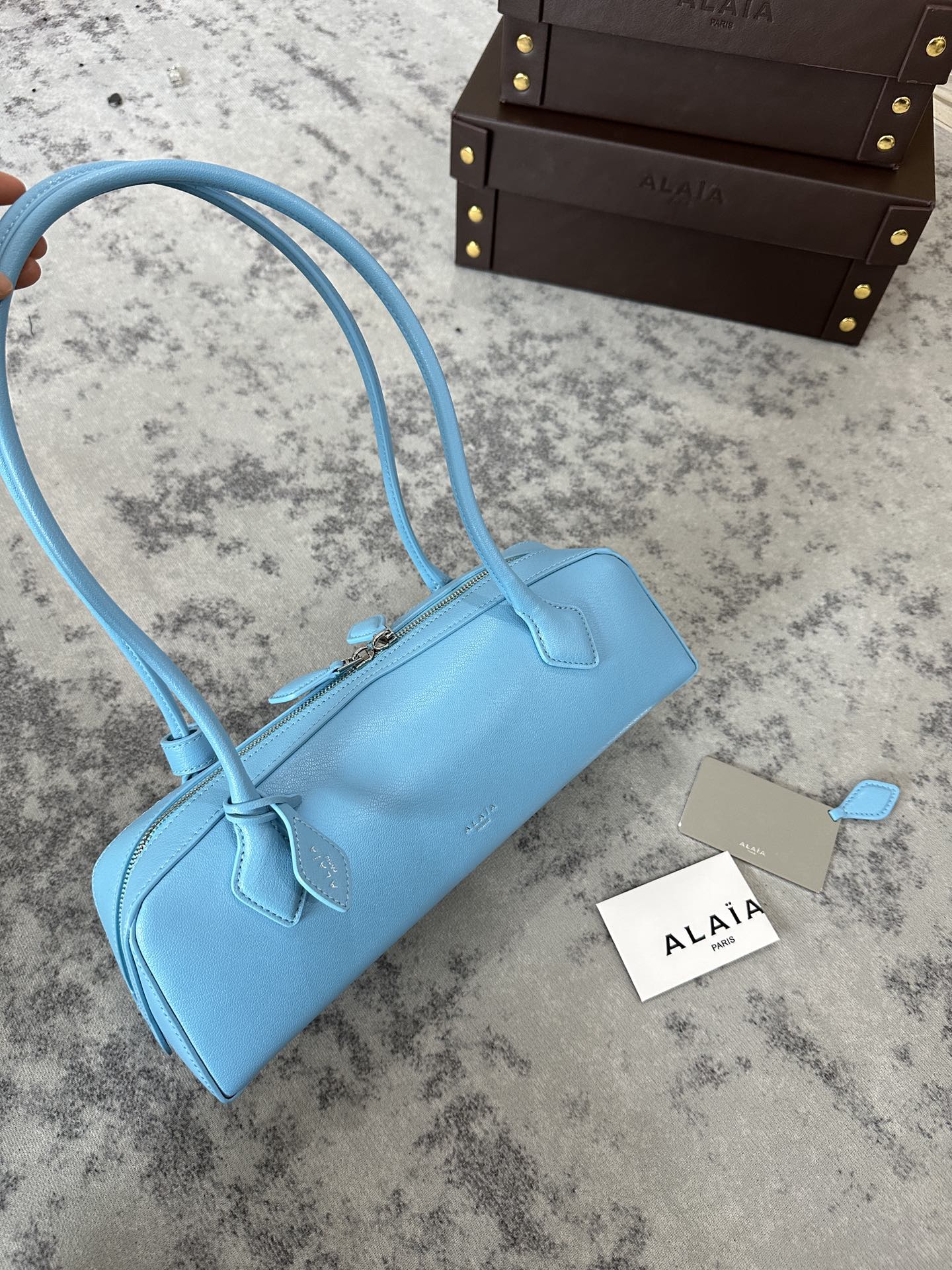 LE TECKEL MEDIUM BAG 32 IN SKY BLUE GOATSKIN