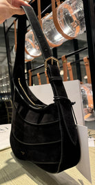 WAVE HOBO BAG 29 IN BLACK SUEDE