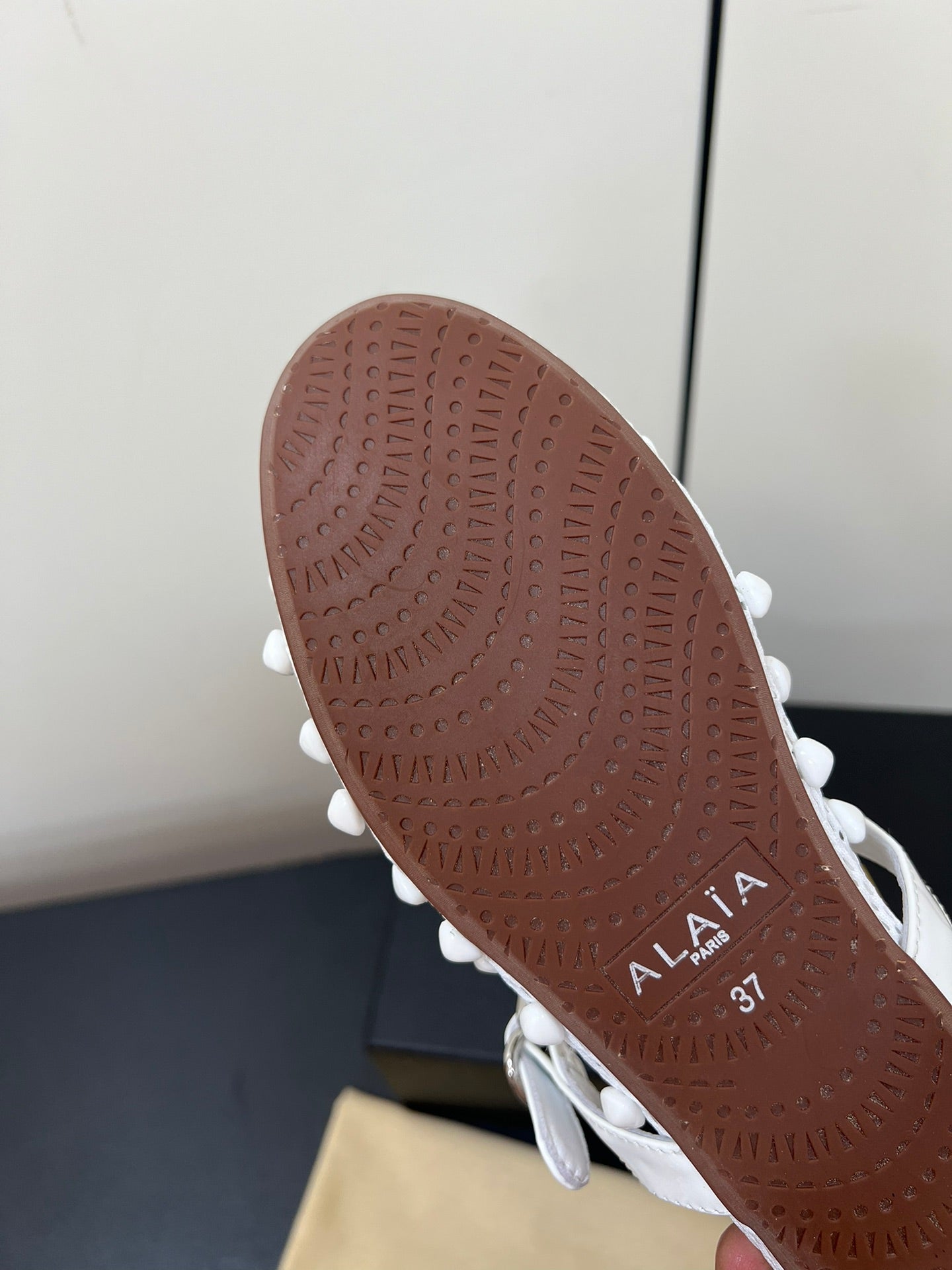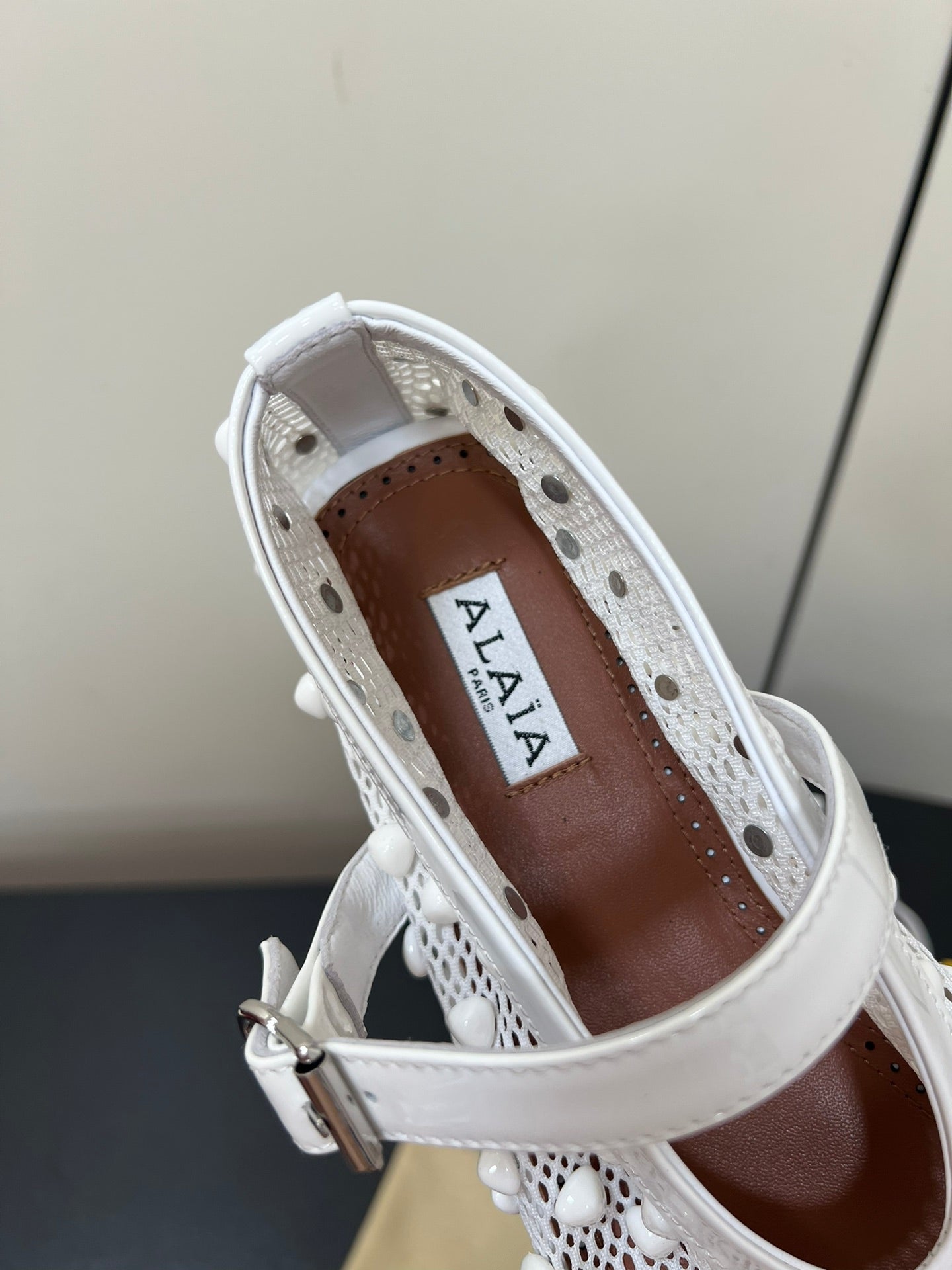 Alaila Ballet Flats With Studs On Fishnet In White 975751