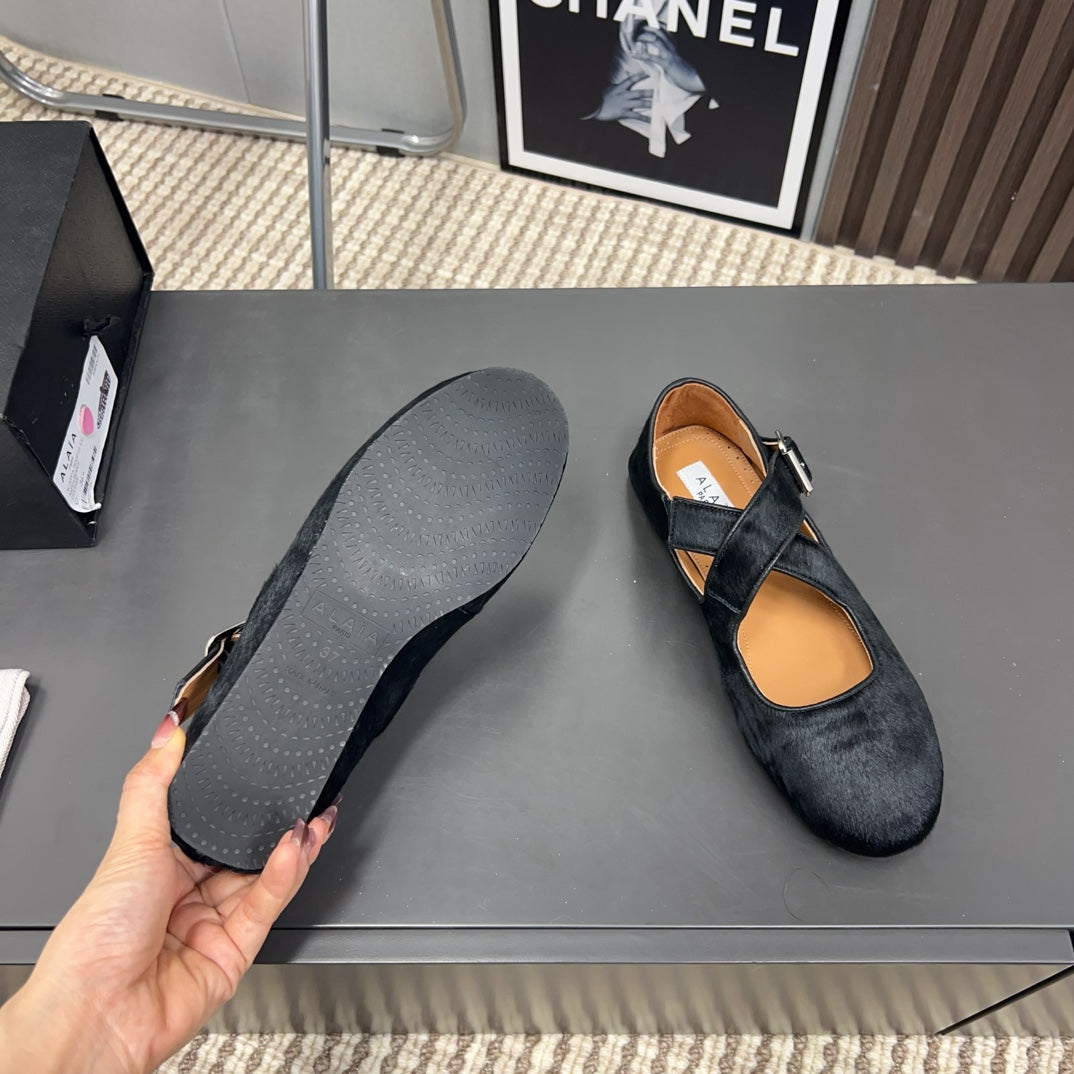 Alaila Criss Cross Ballet Flats In Black Lambskin 996055