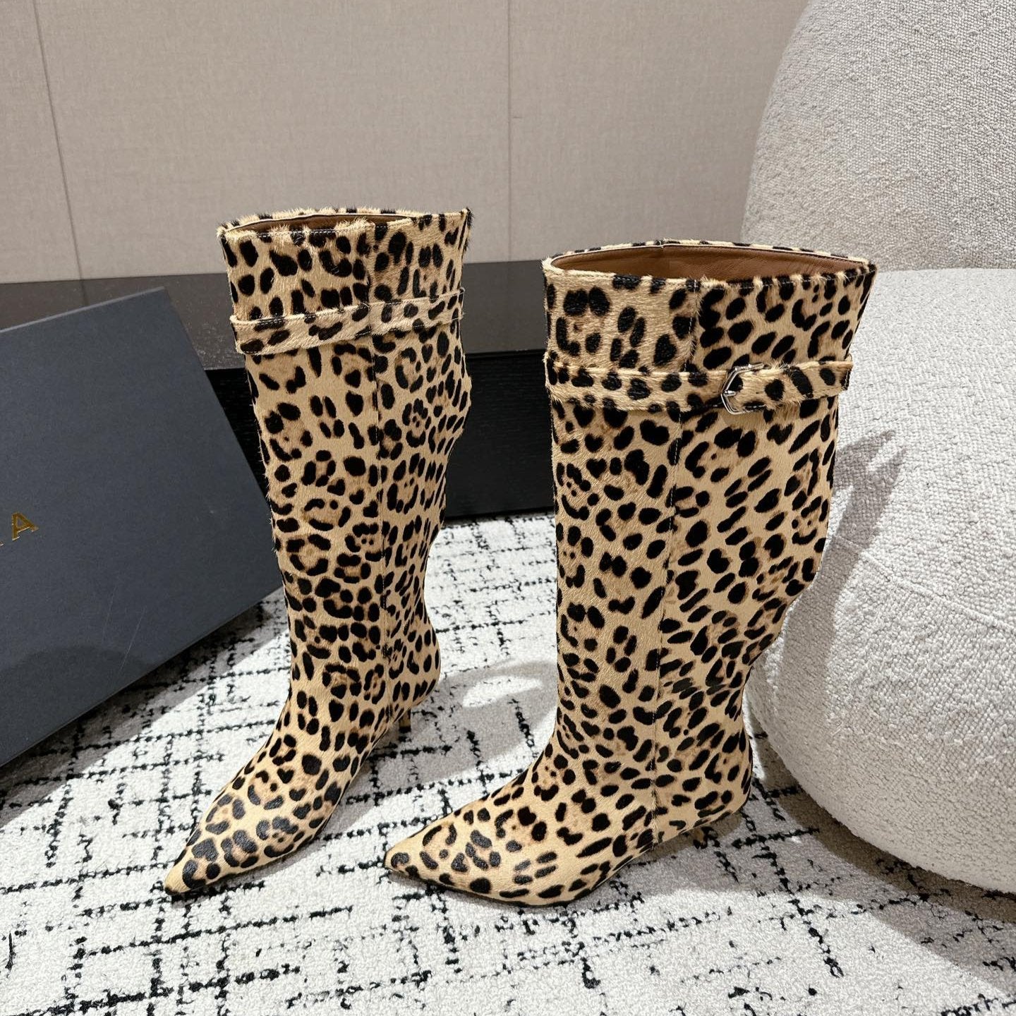 Alaila High Boots 60mm In Light Yellow Calfskin Horsehair Leopard Print 916740