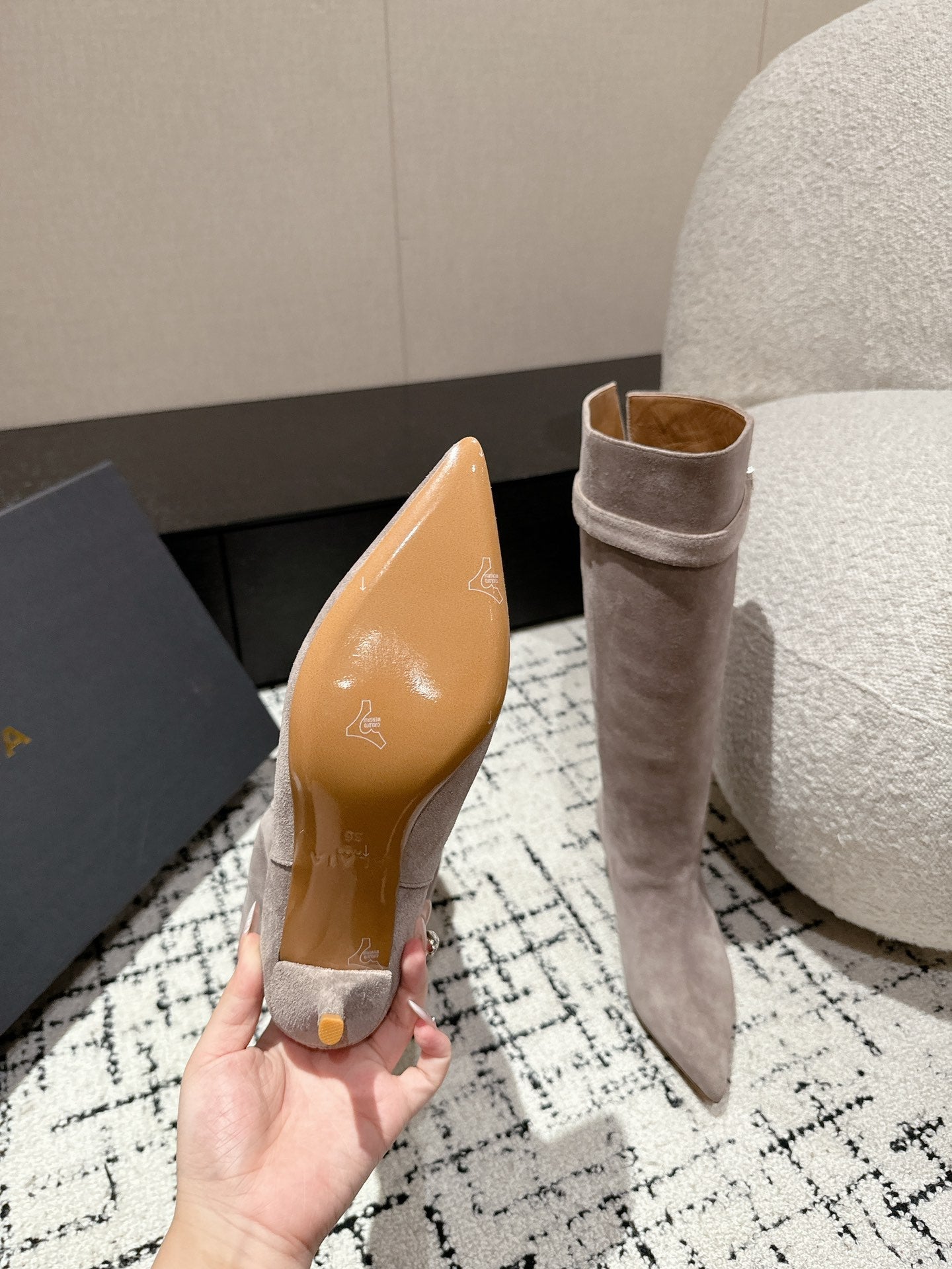 Alaila High Boots 60mm In Light Grey Suede 916739