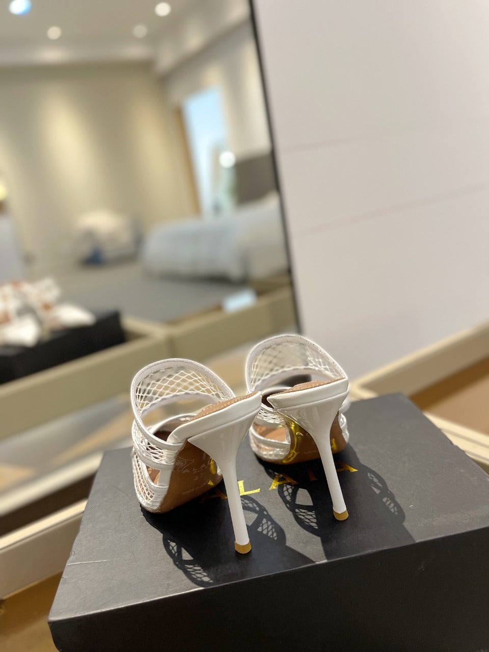 alaia mule 110 fishnet white heart lambskin