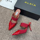 alaia mule 90 red grosgrain heart patent calfskin