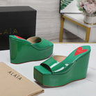 ALAIA PLATFORM WEDGE IN COOL GREEN LAMBSKIN WITH RED HEART