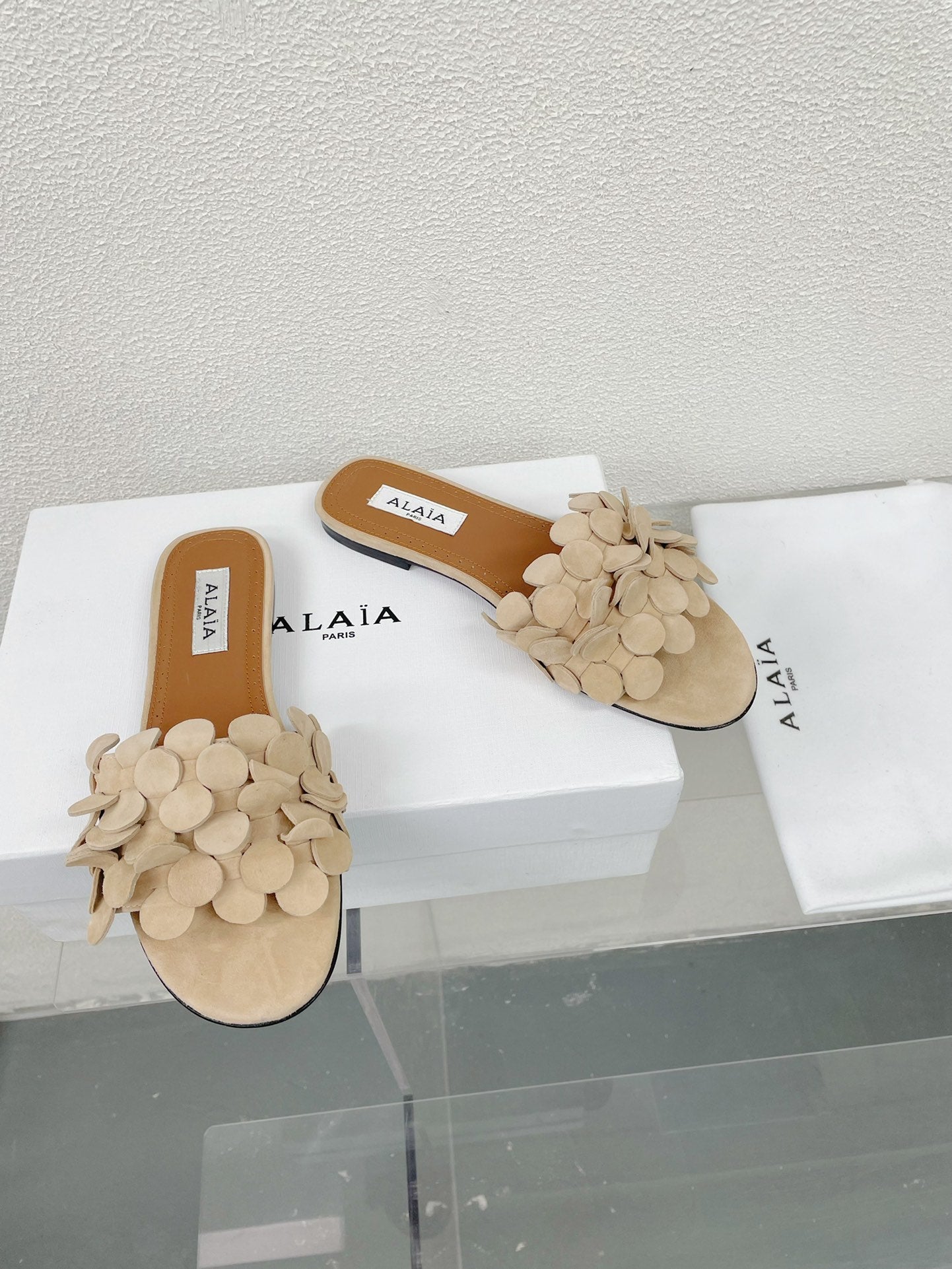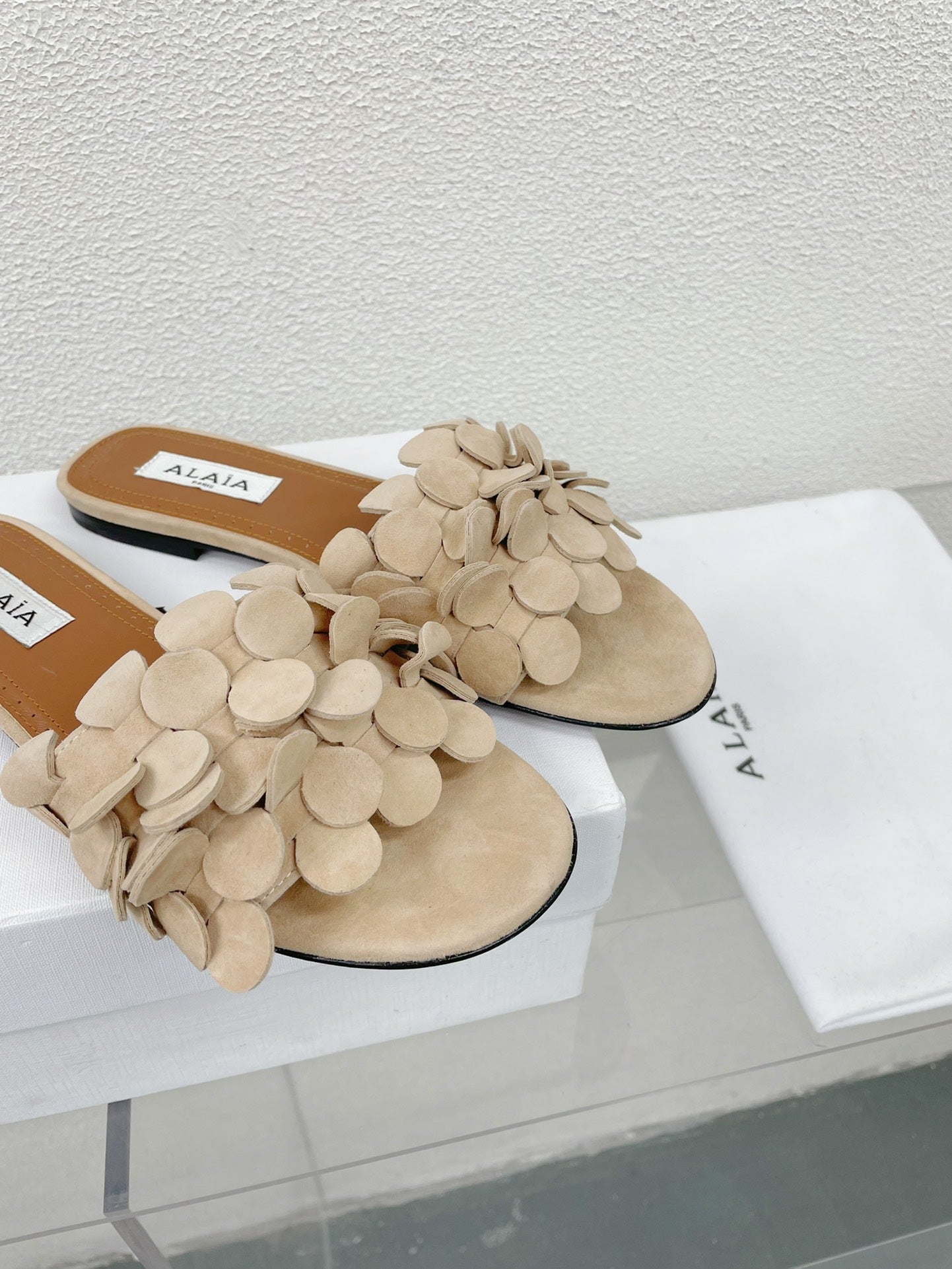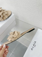 alaia sandal mule flower beige suede