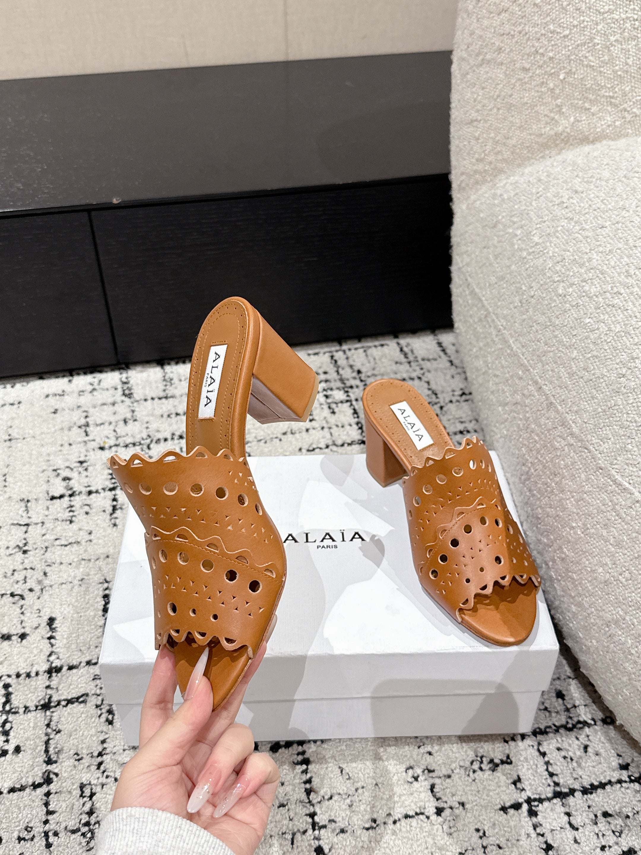 Alaia Vienne Mule Heeled Sandals 70mm Gold Leather 232503