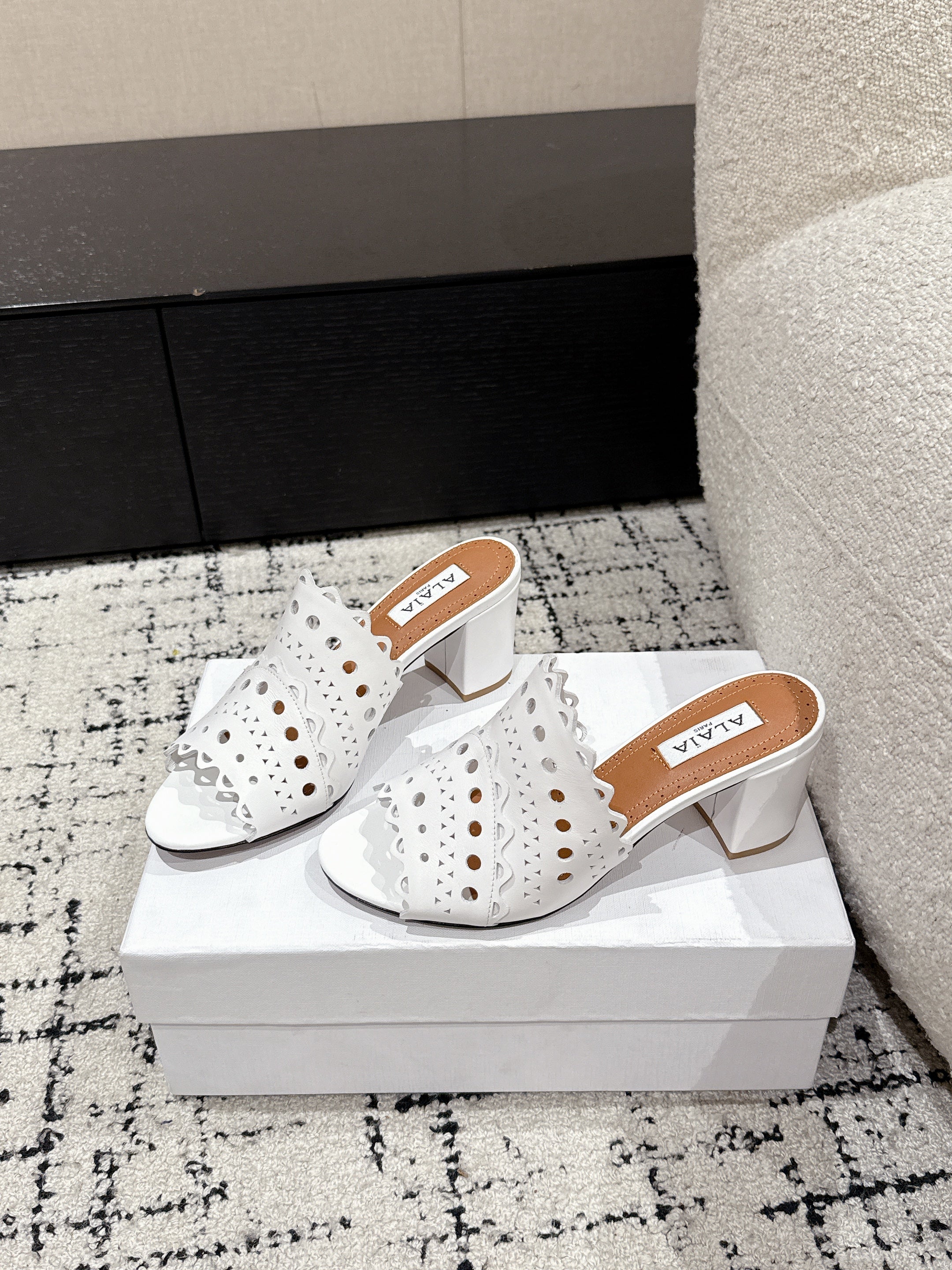 Alaia Vienne Mule Heeled Sandals 70mm White Leather 232504