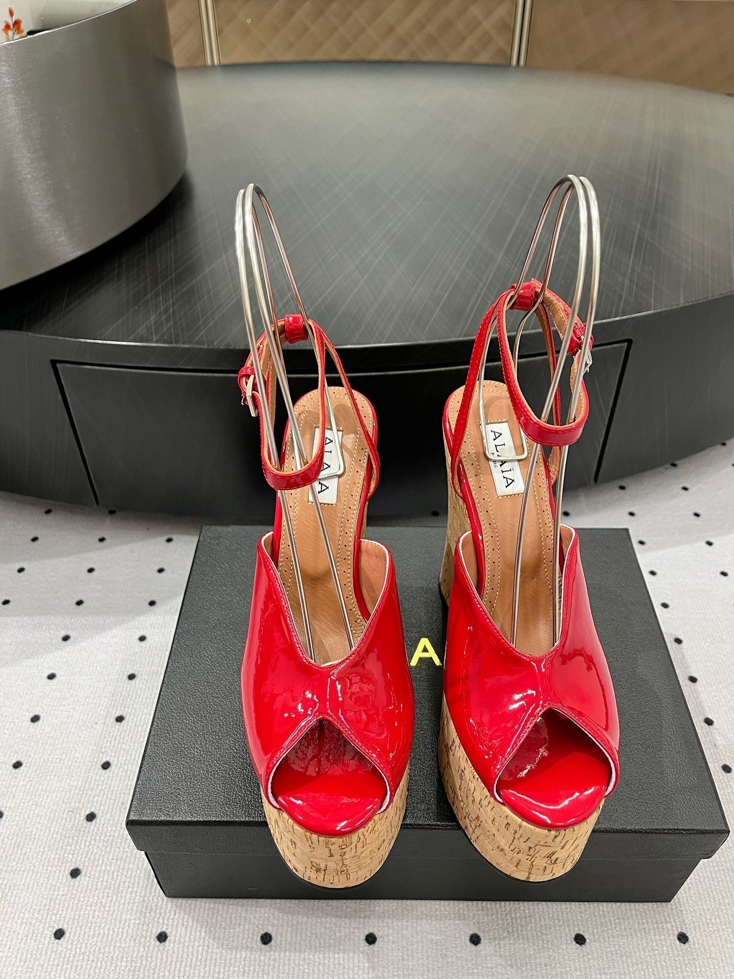 Alaila Wedge Sandals 135mm In Red Glossy Lambskin 954901