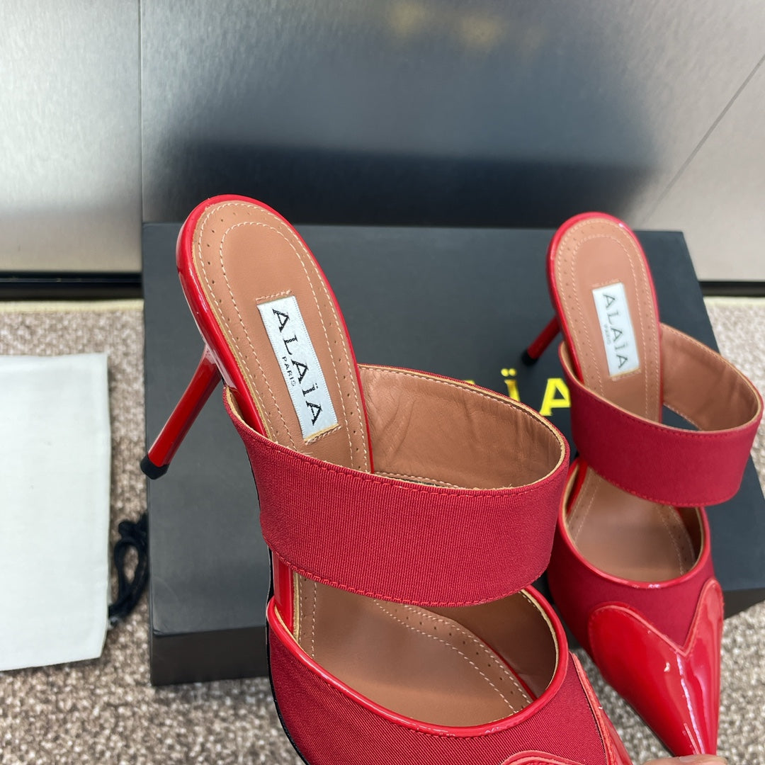 ALAIA FLAT MULES IN CHERRY RED MESH FISHNET