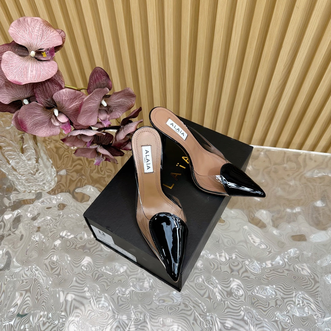 Alaia Wedge Thong Sandals 25s In Black Suede