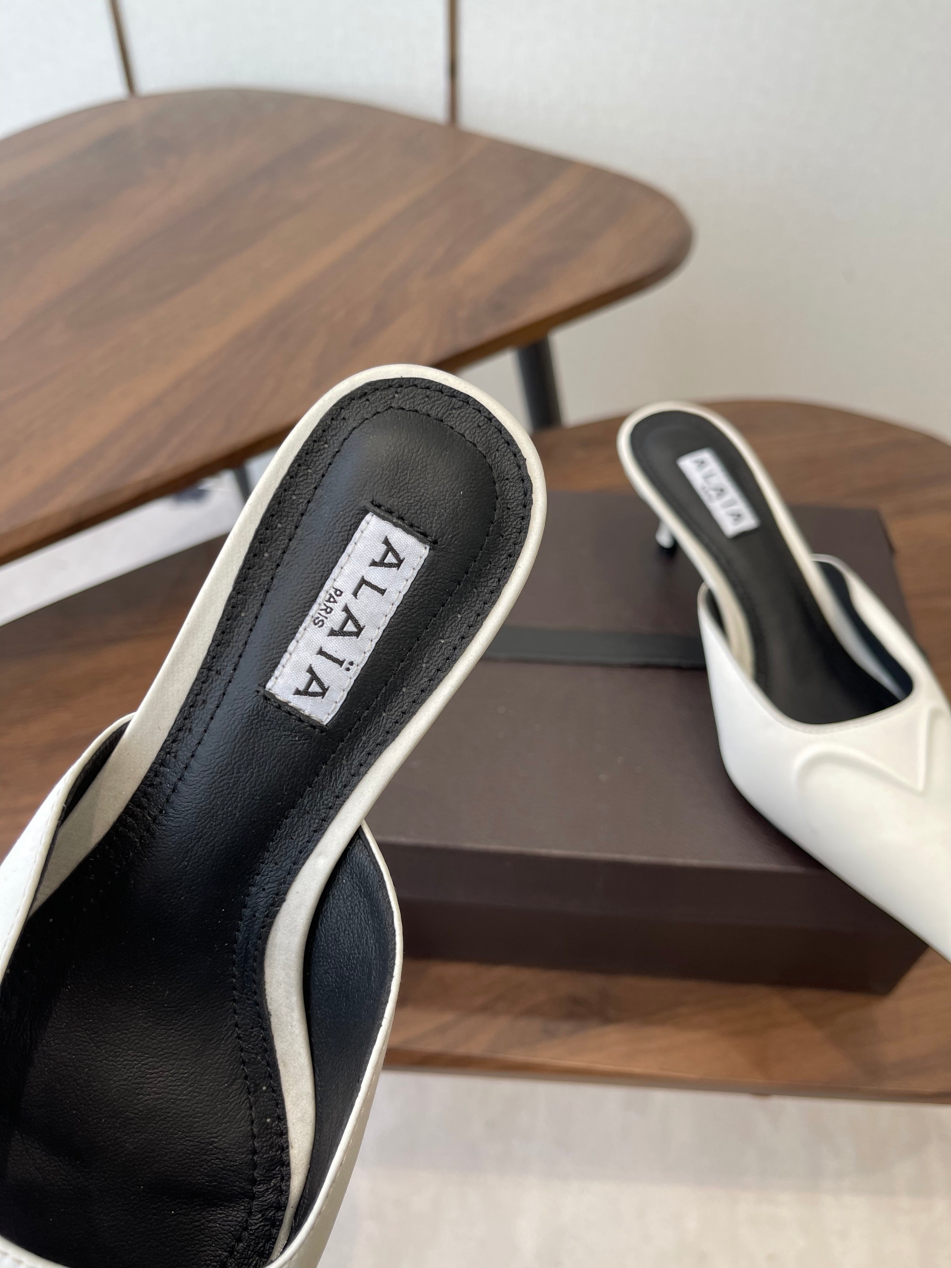 Alaia 26 Pointed-toe Mules 50 White Black Sheepskin 624913