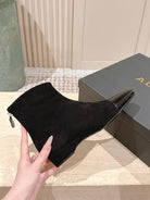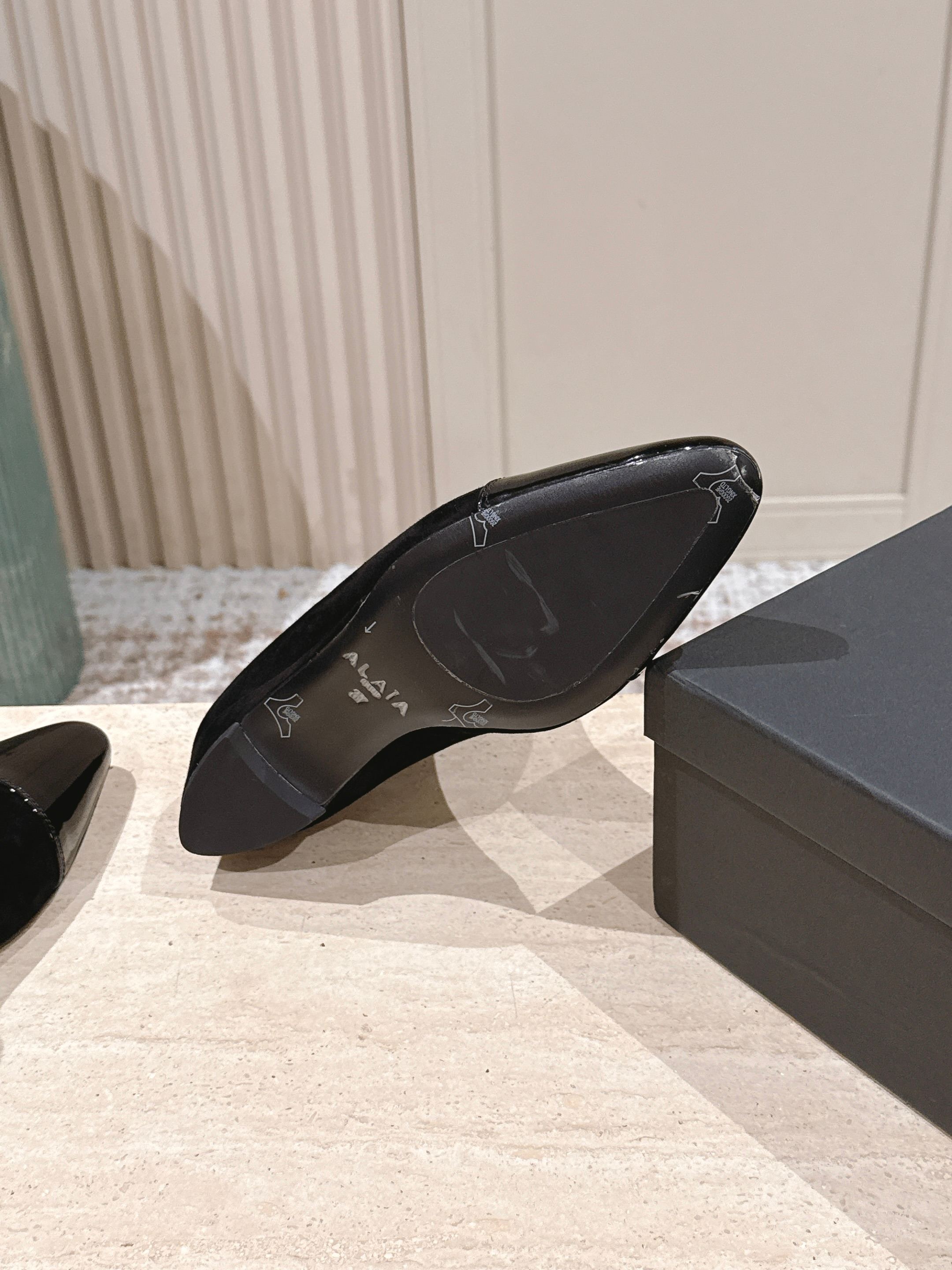Alaia 2025 Ankle Boot With Patent Leather Cap Toe Black Suede 556086