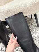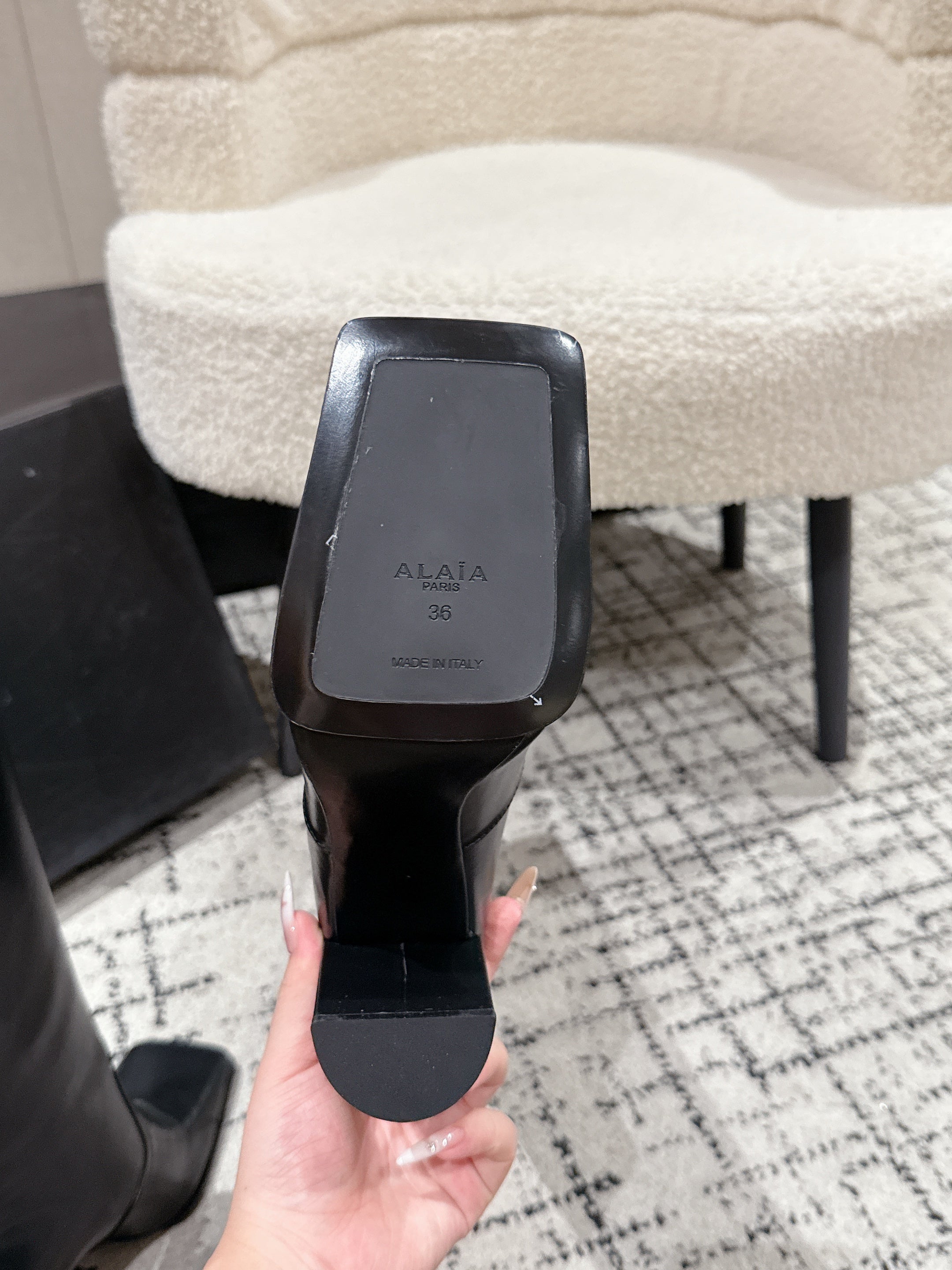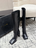 Alaia 2025 Square Toe High Heeled Boot Black Calfskin 558669