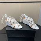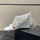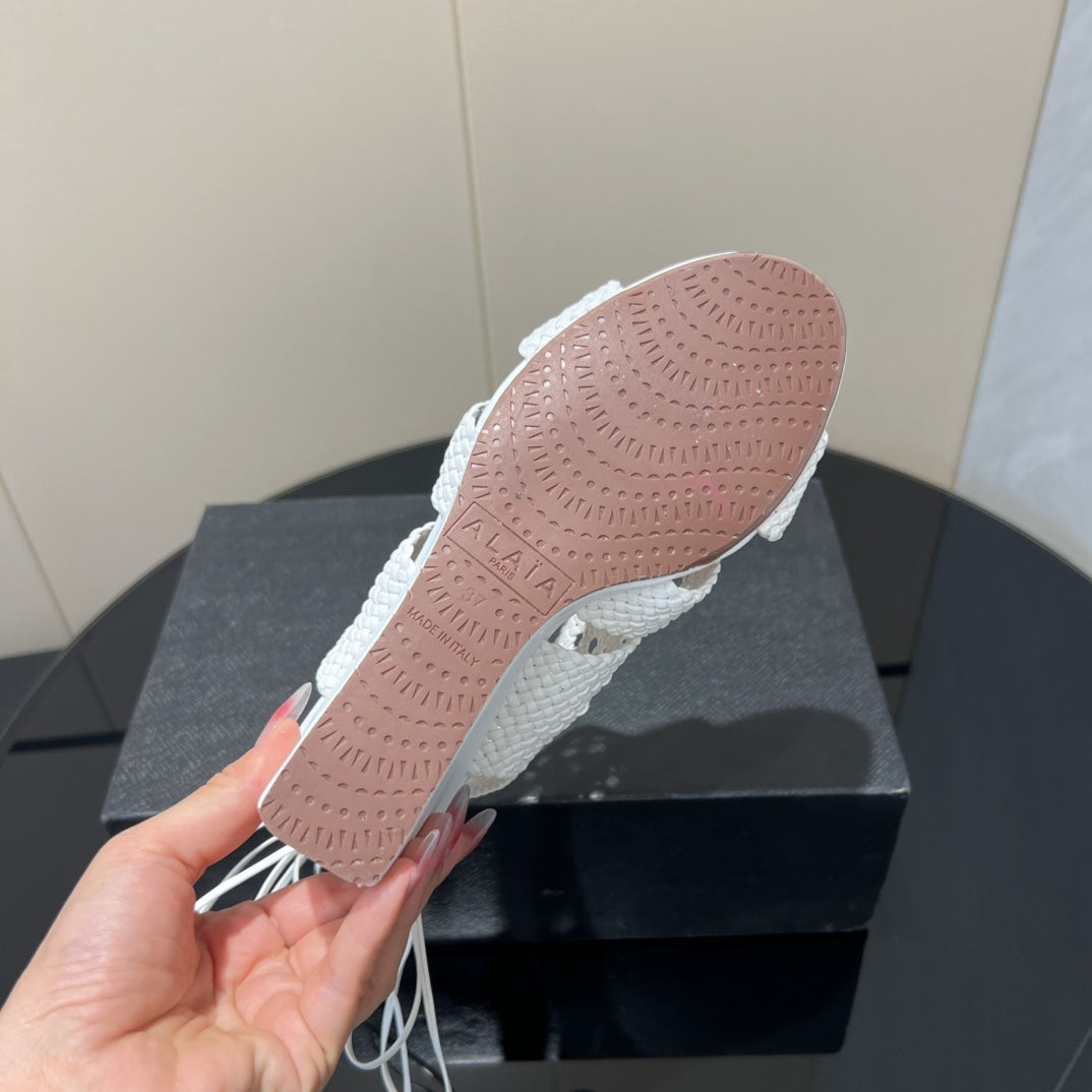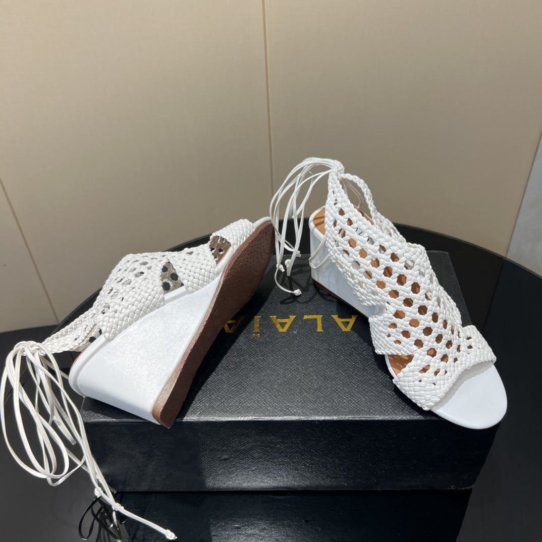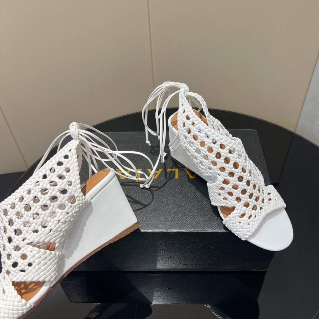 Alaia 25 Round-toe Braided Wedge Sandals 75mm White Woven Leather 433566