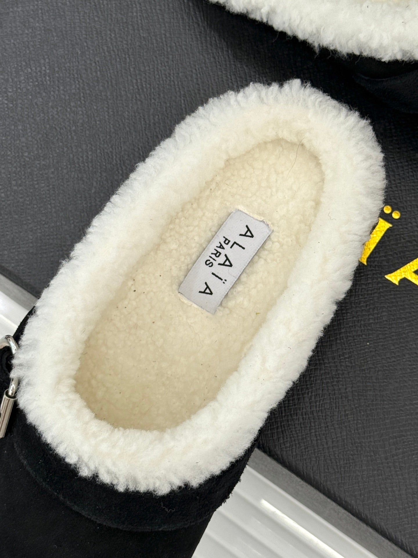 Alaia 25WF slippers belt buckle black suede wool 472226