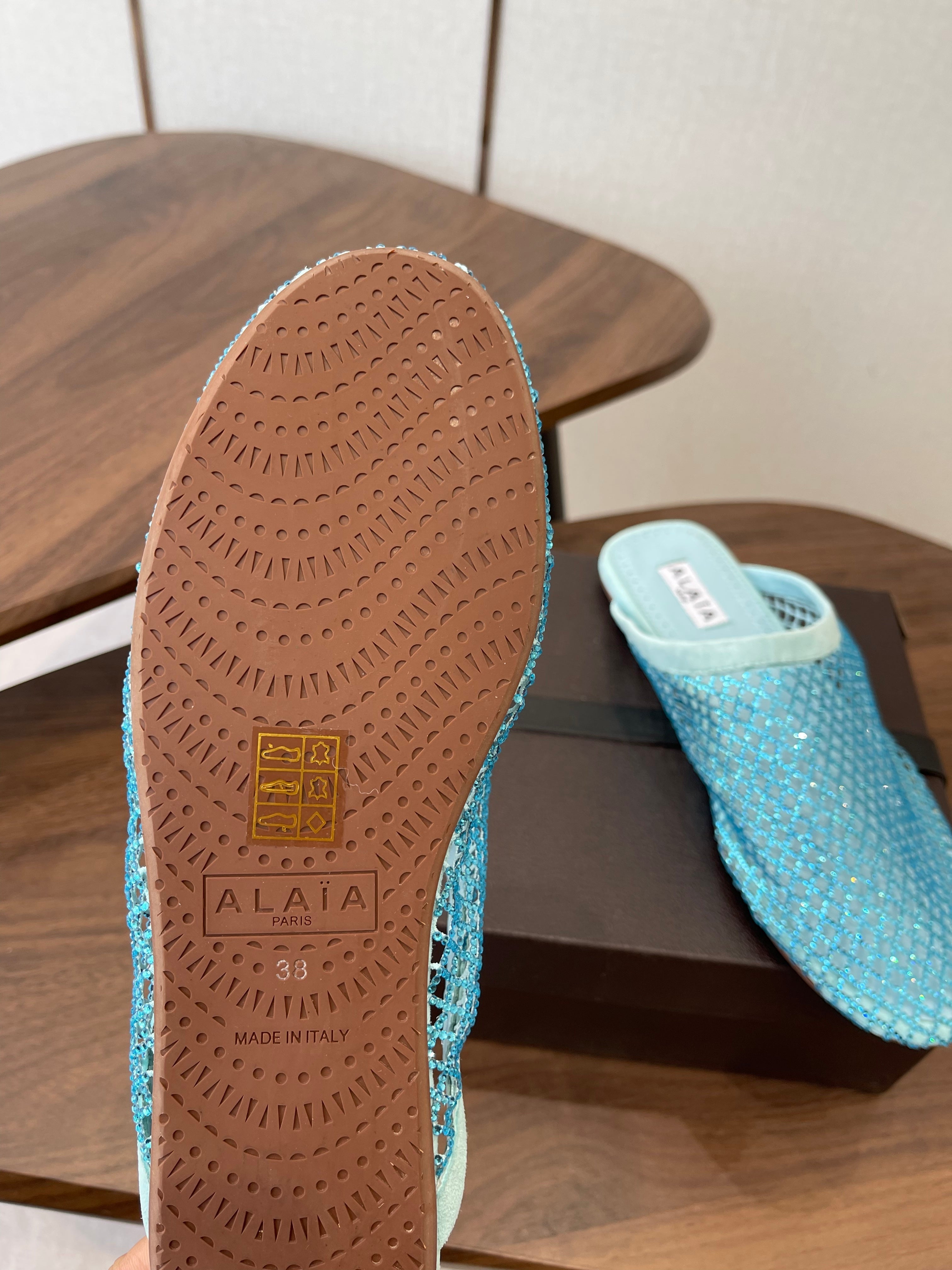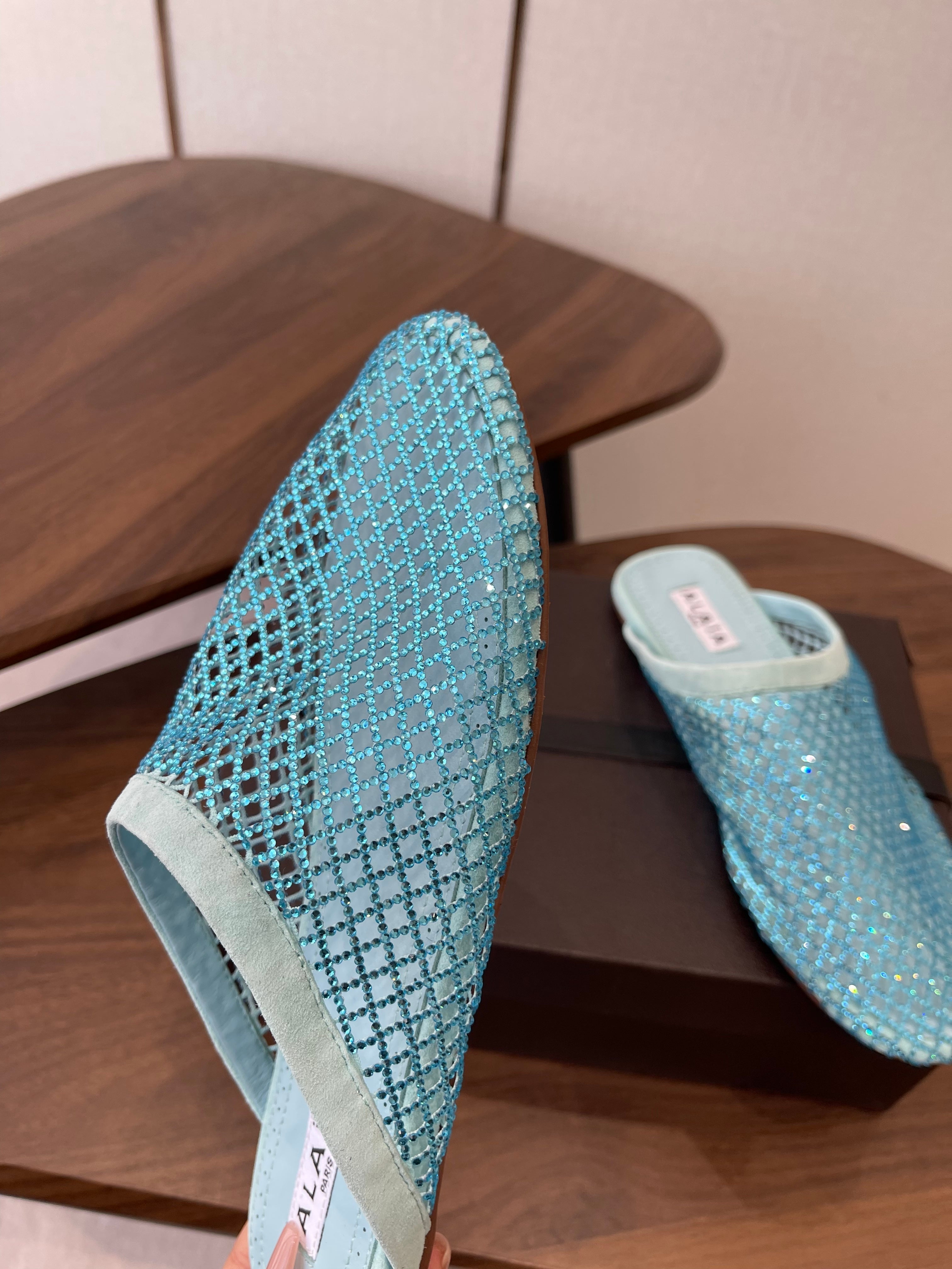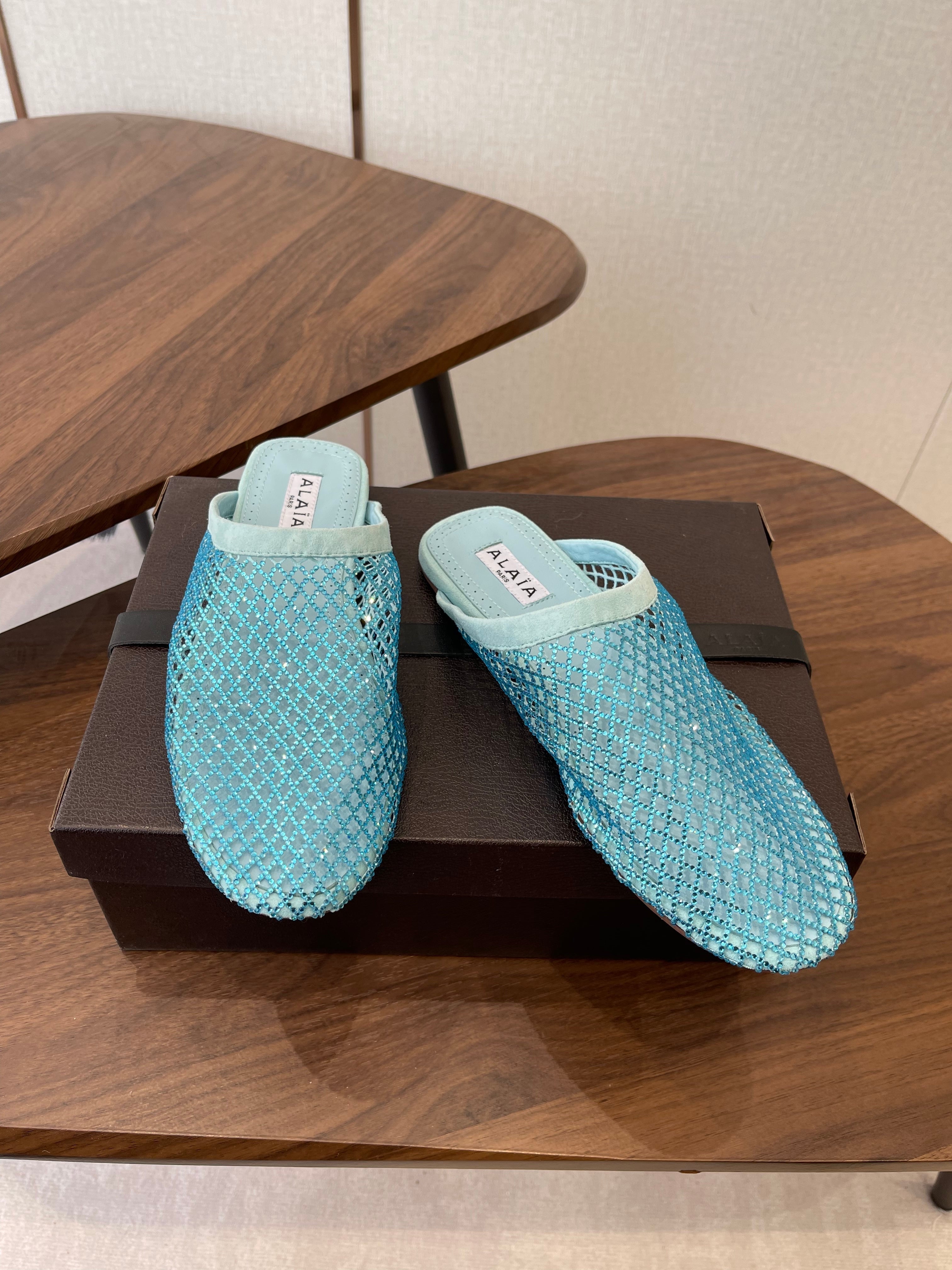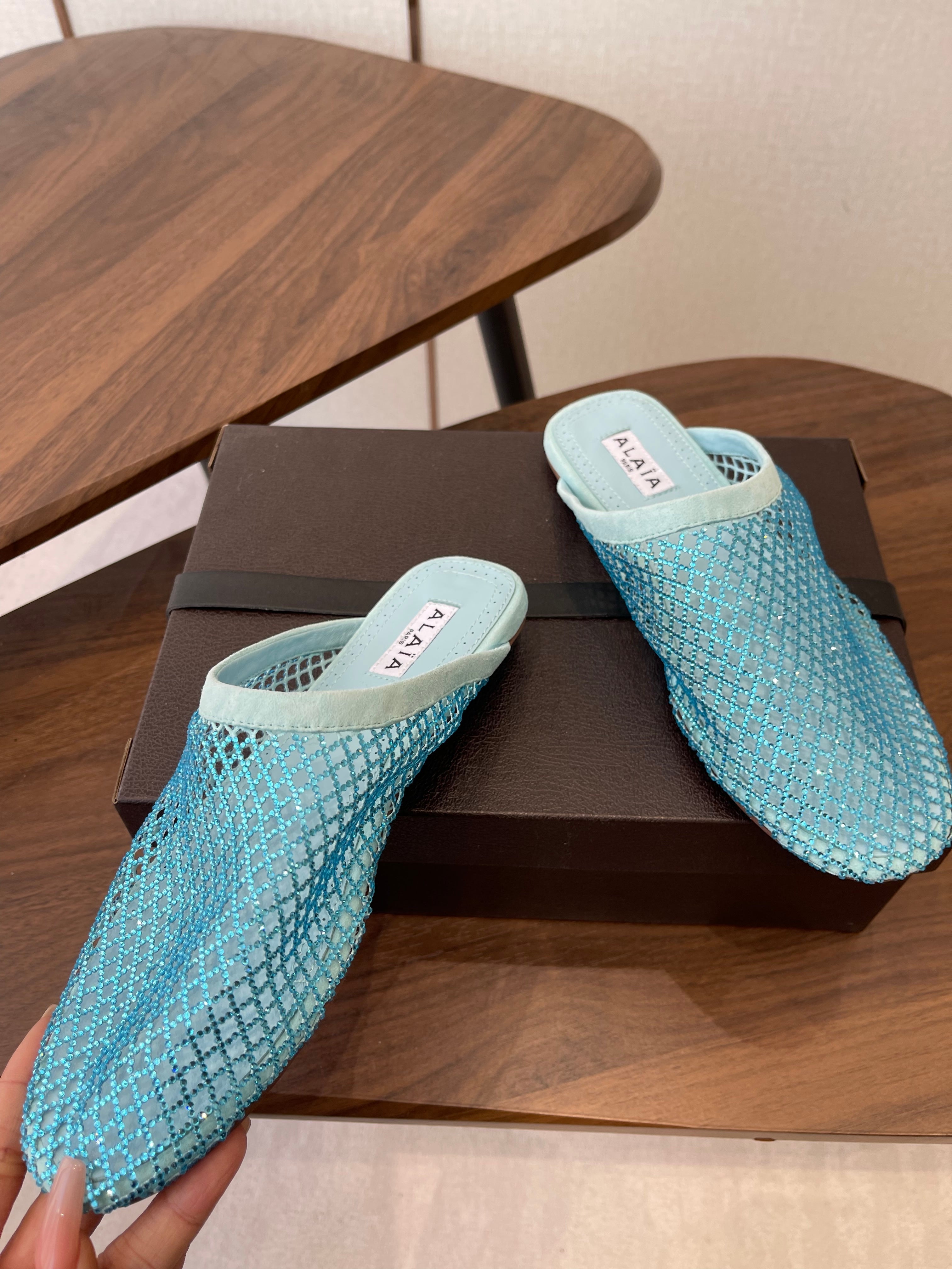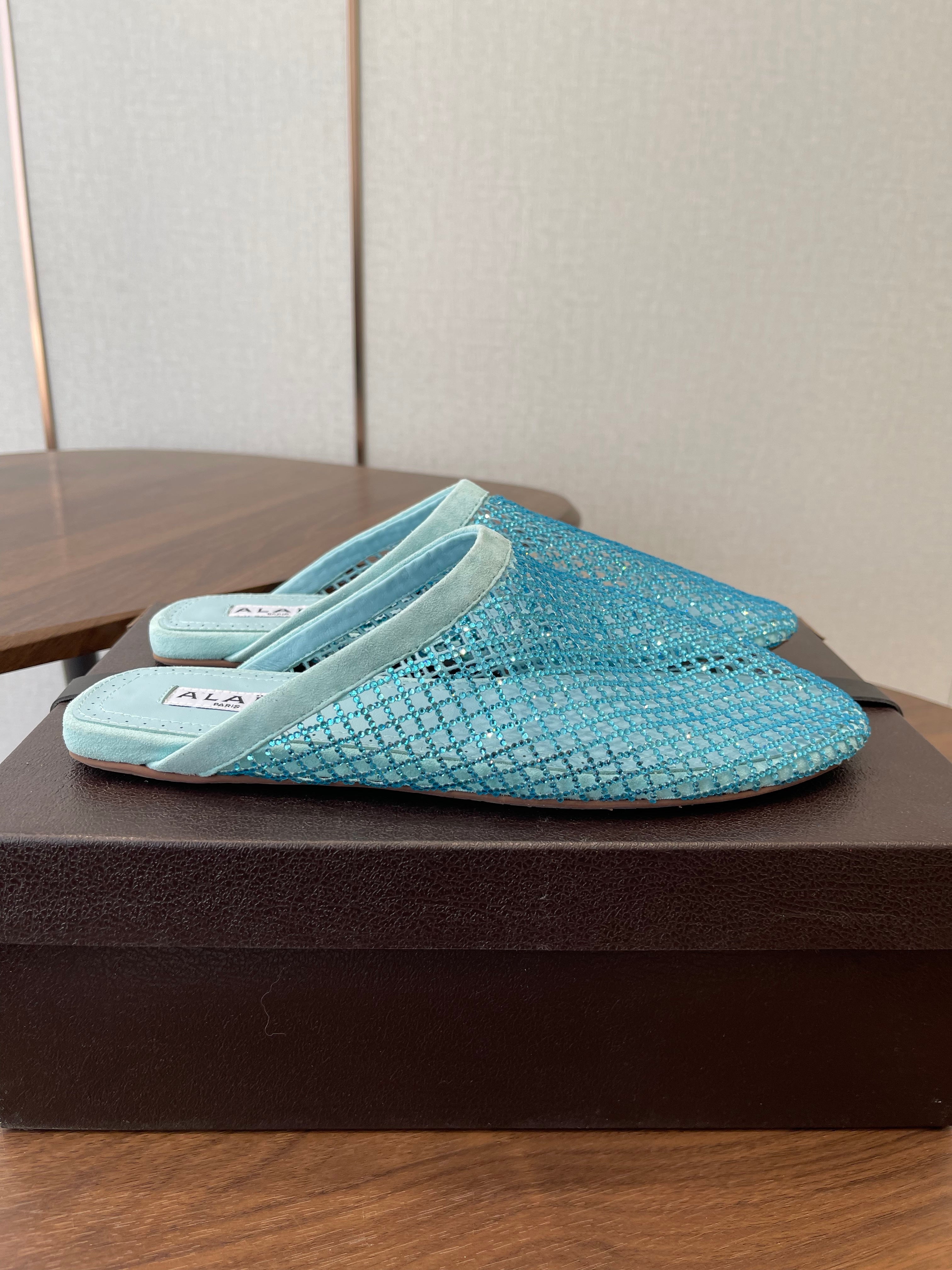 Alaia 26 Half-Slippers Blue Mesh Rhinestones 624905