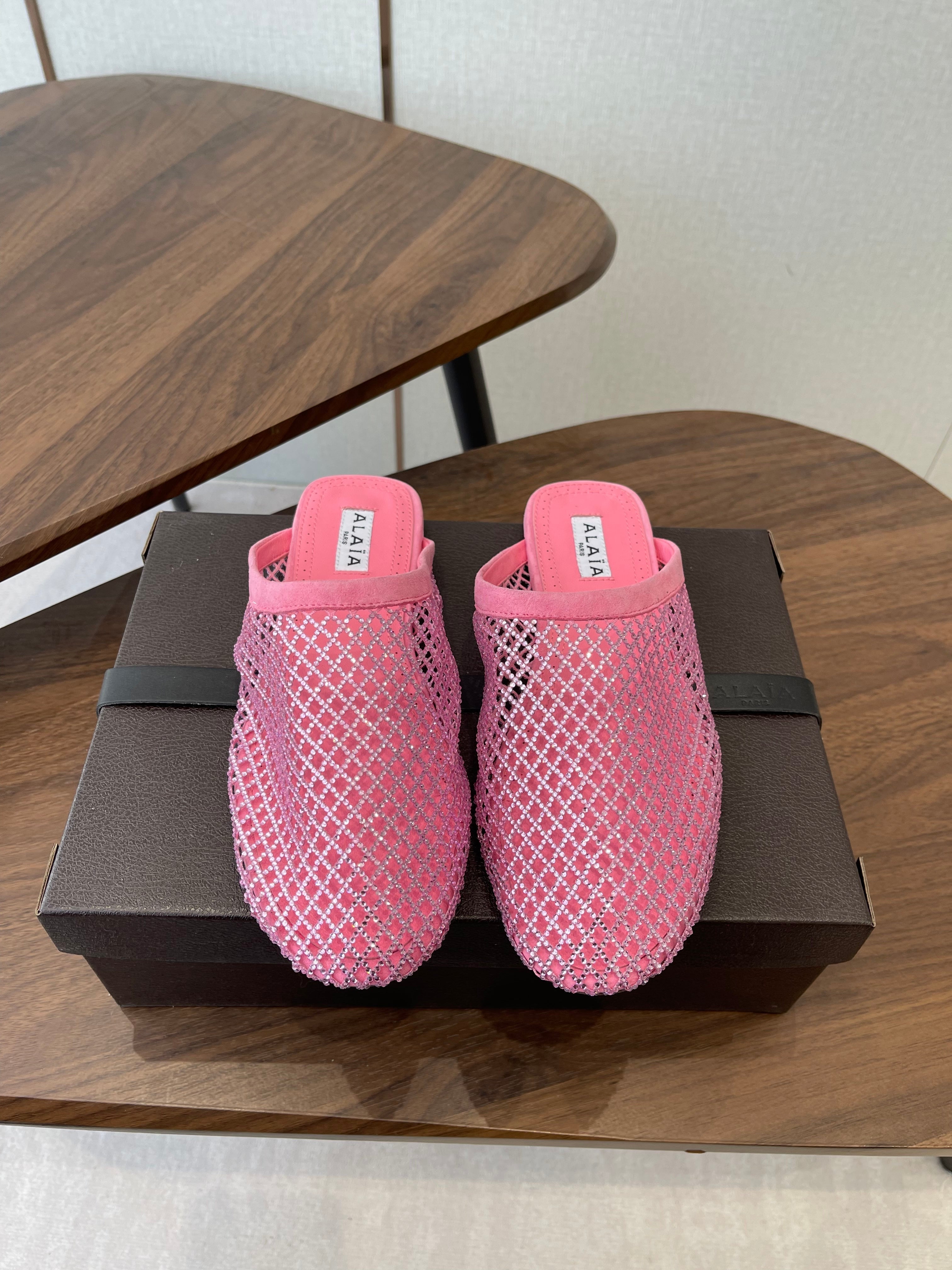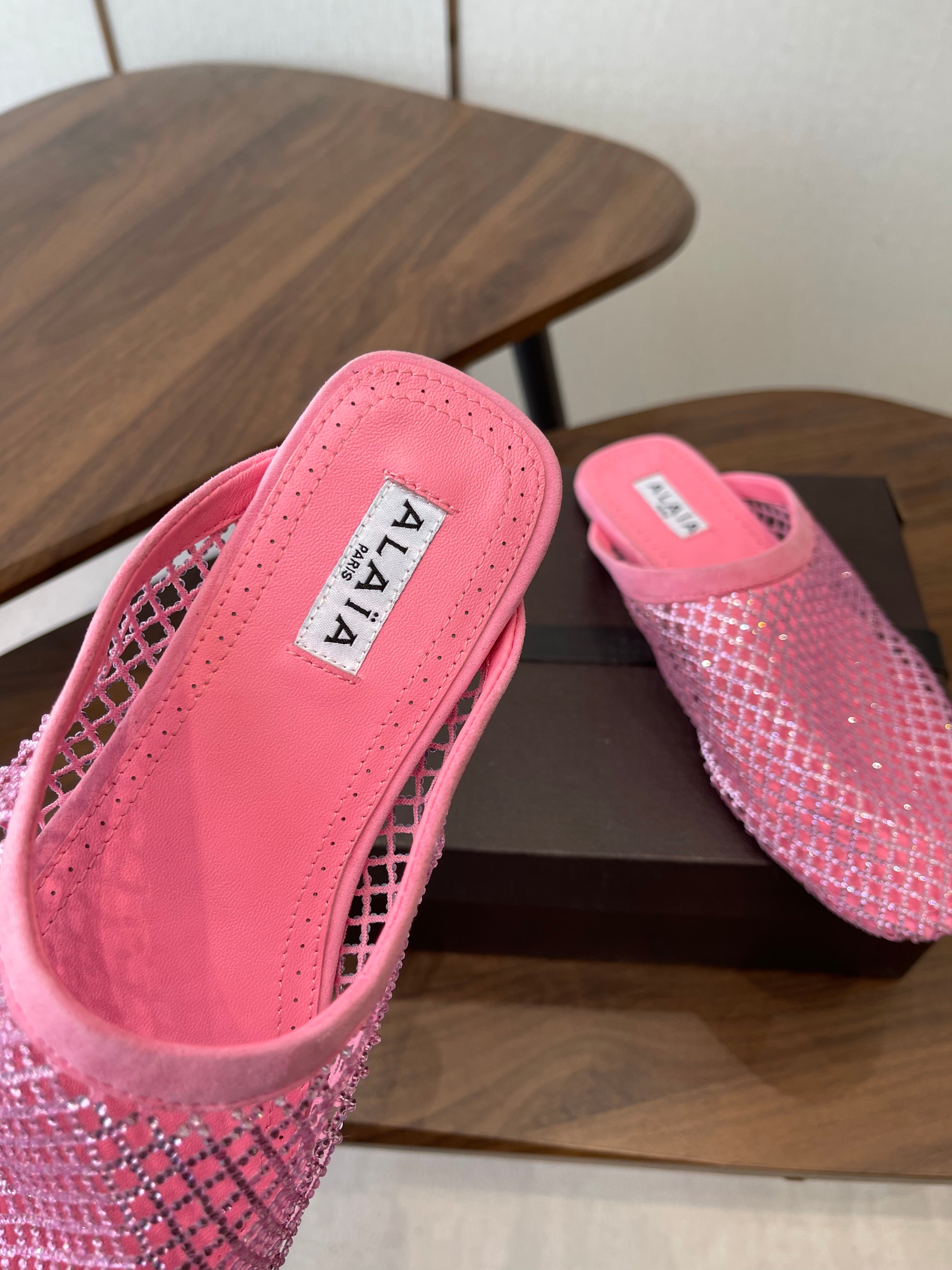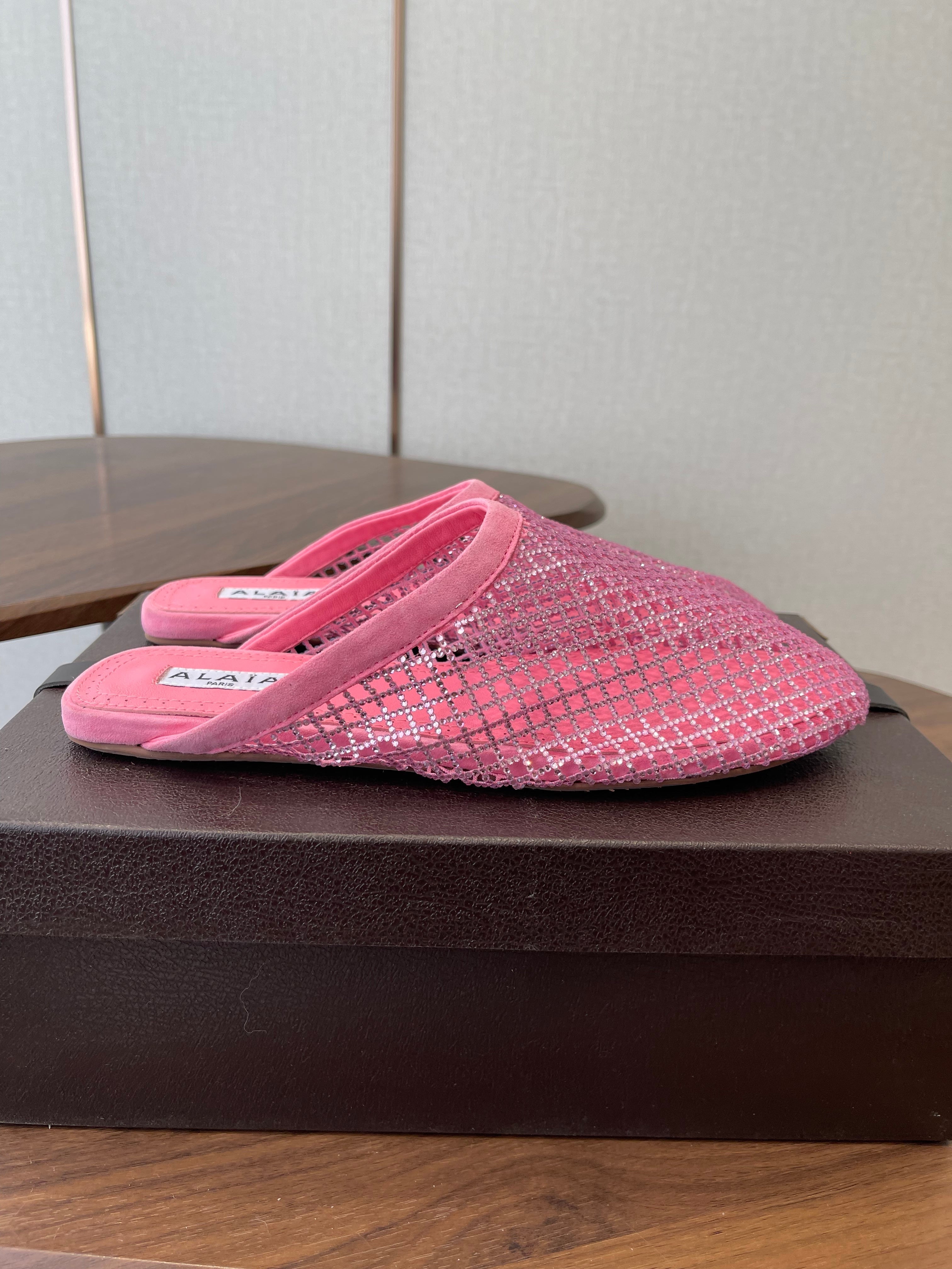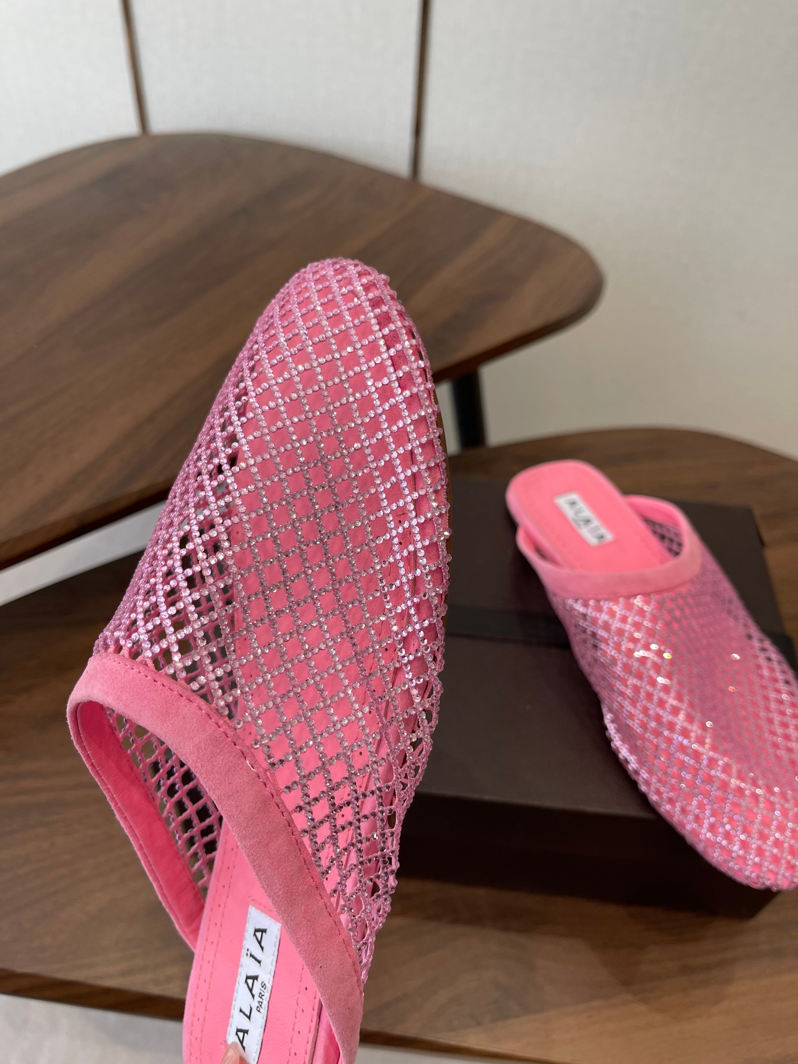 Alaia 26 Half-Slippers Pink Mesh Rhinestones 624902
