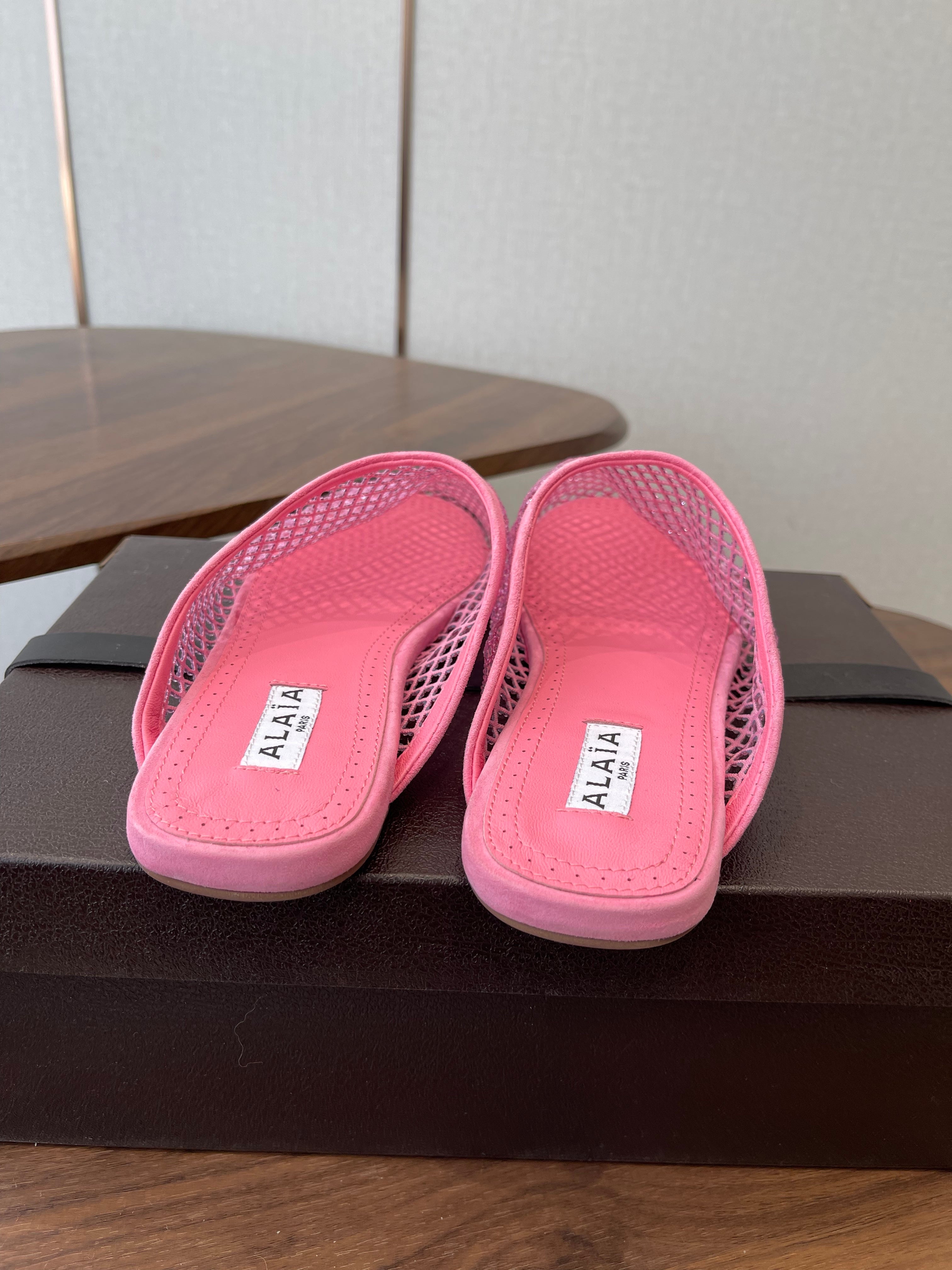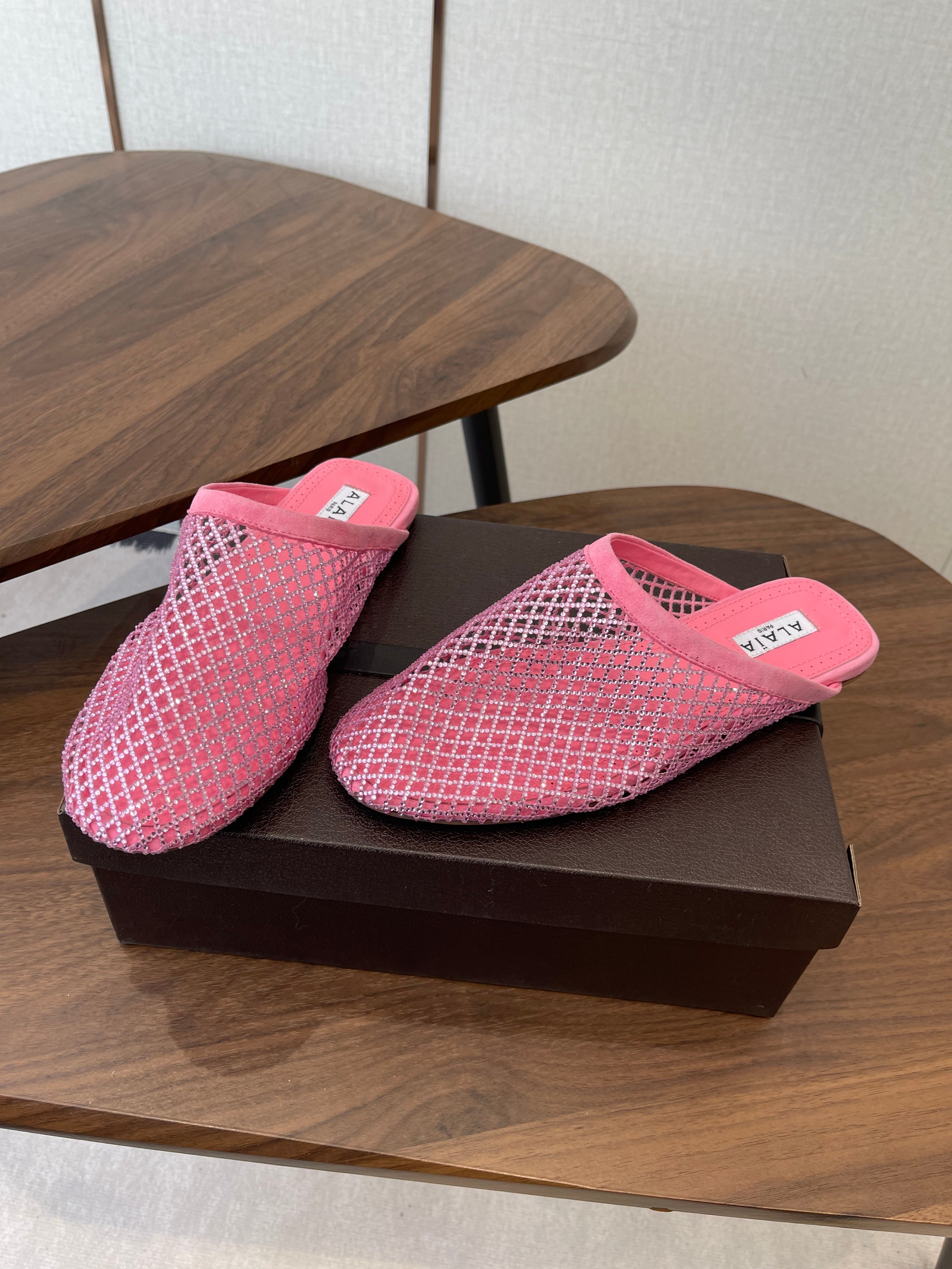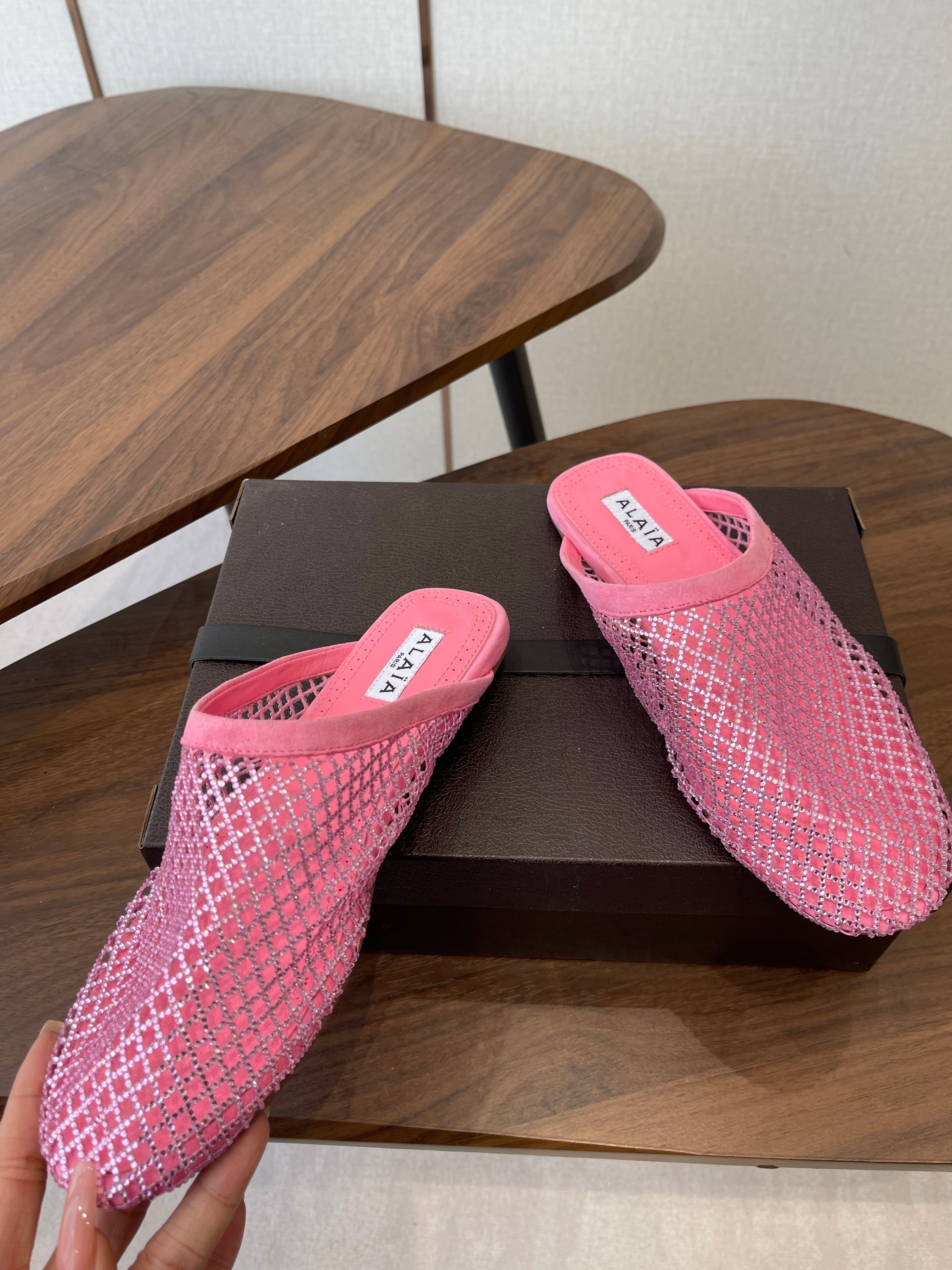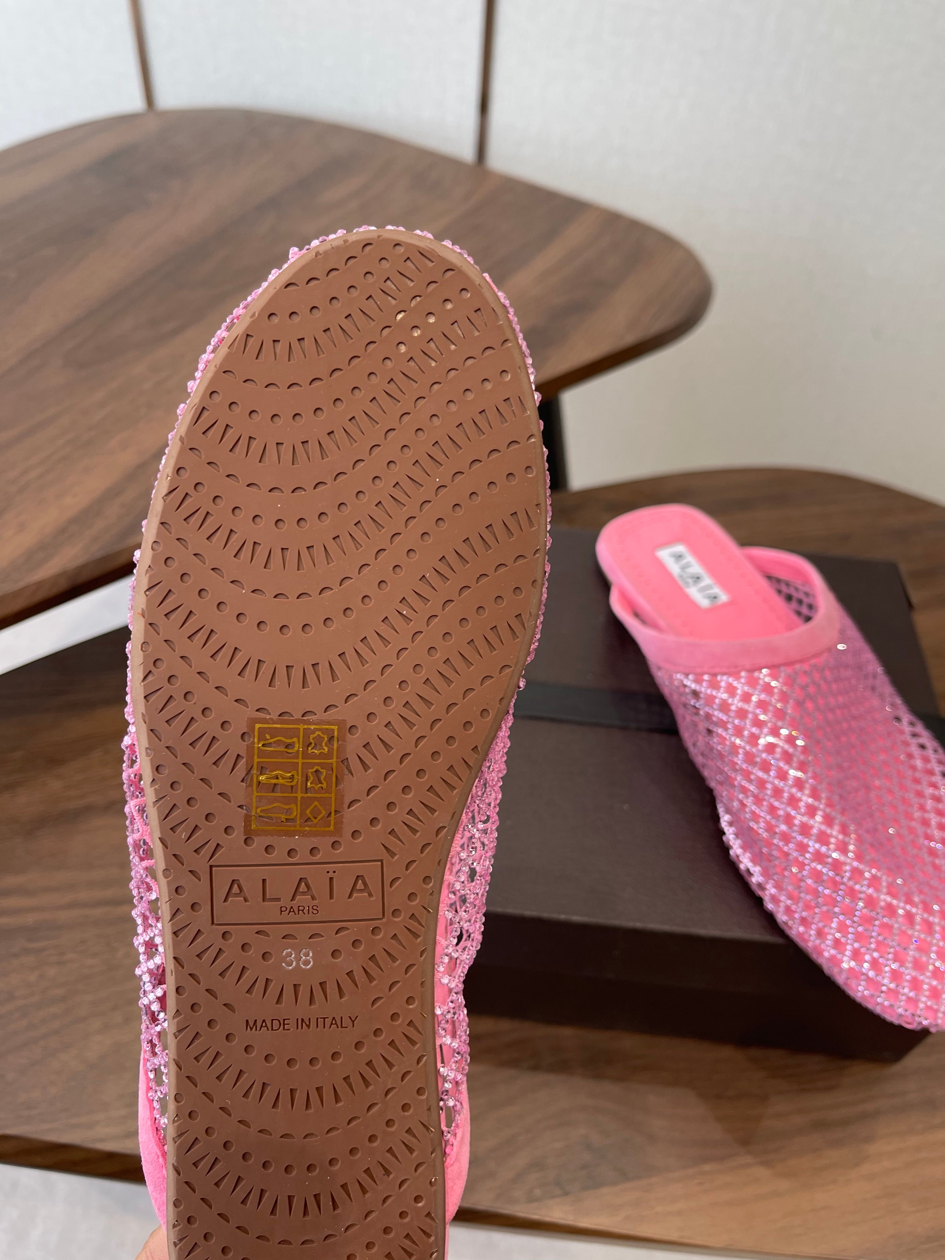 Alaia 26 Half-Slippers Pink Mesh Rhinestones 624902