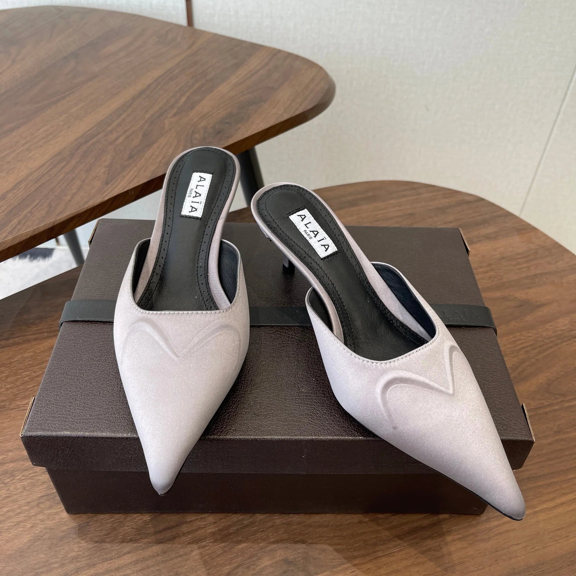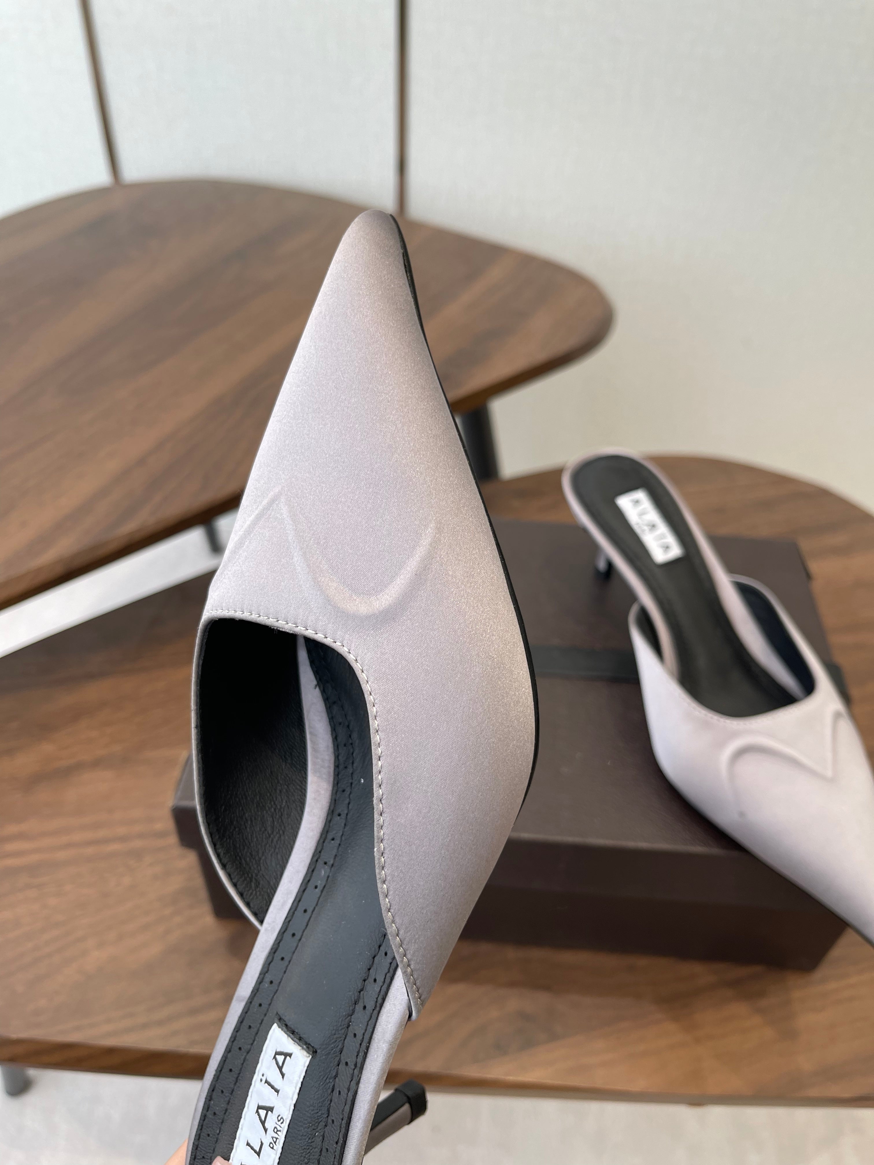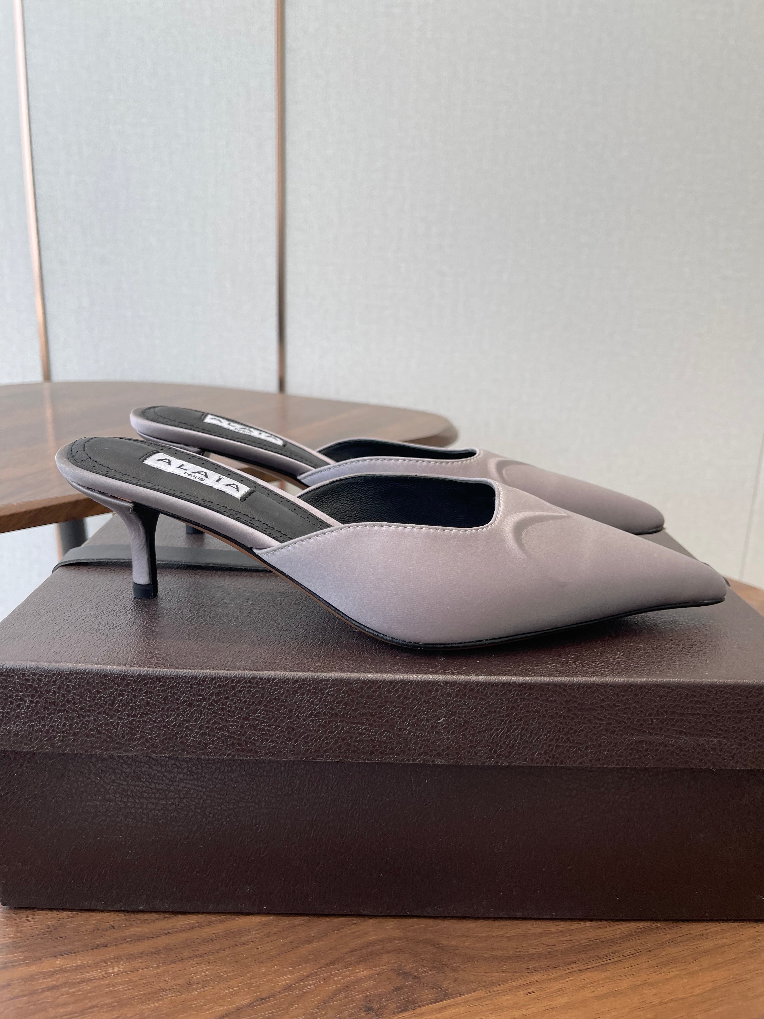 Alaia 26 Pointed-toe Mules 50 Light Gray Sheepskin 624911