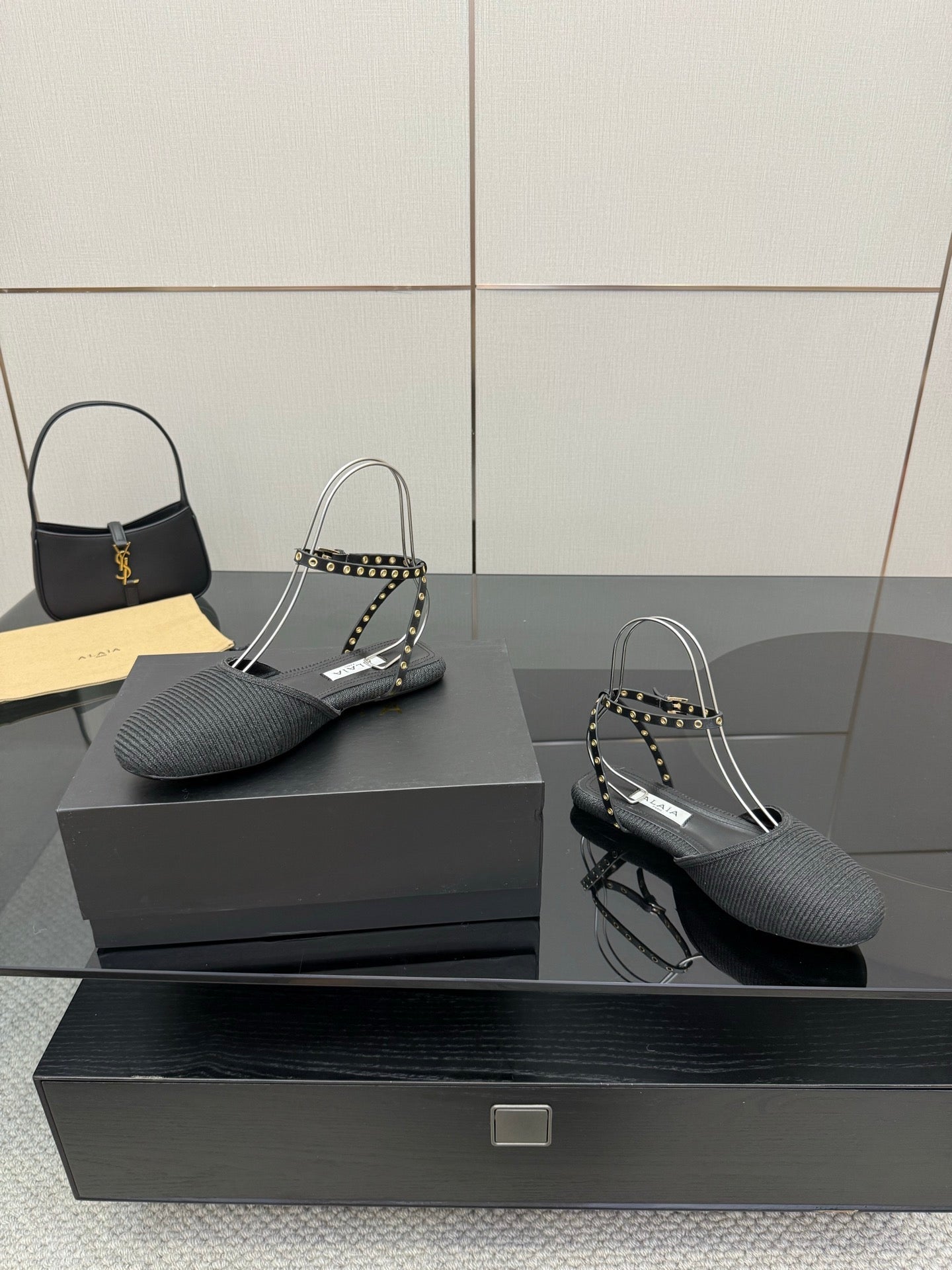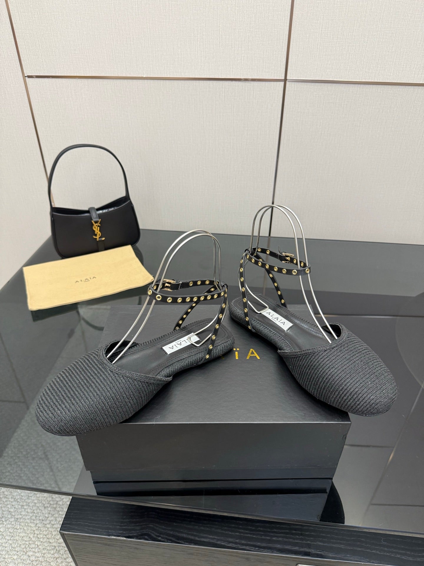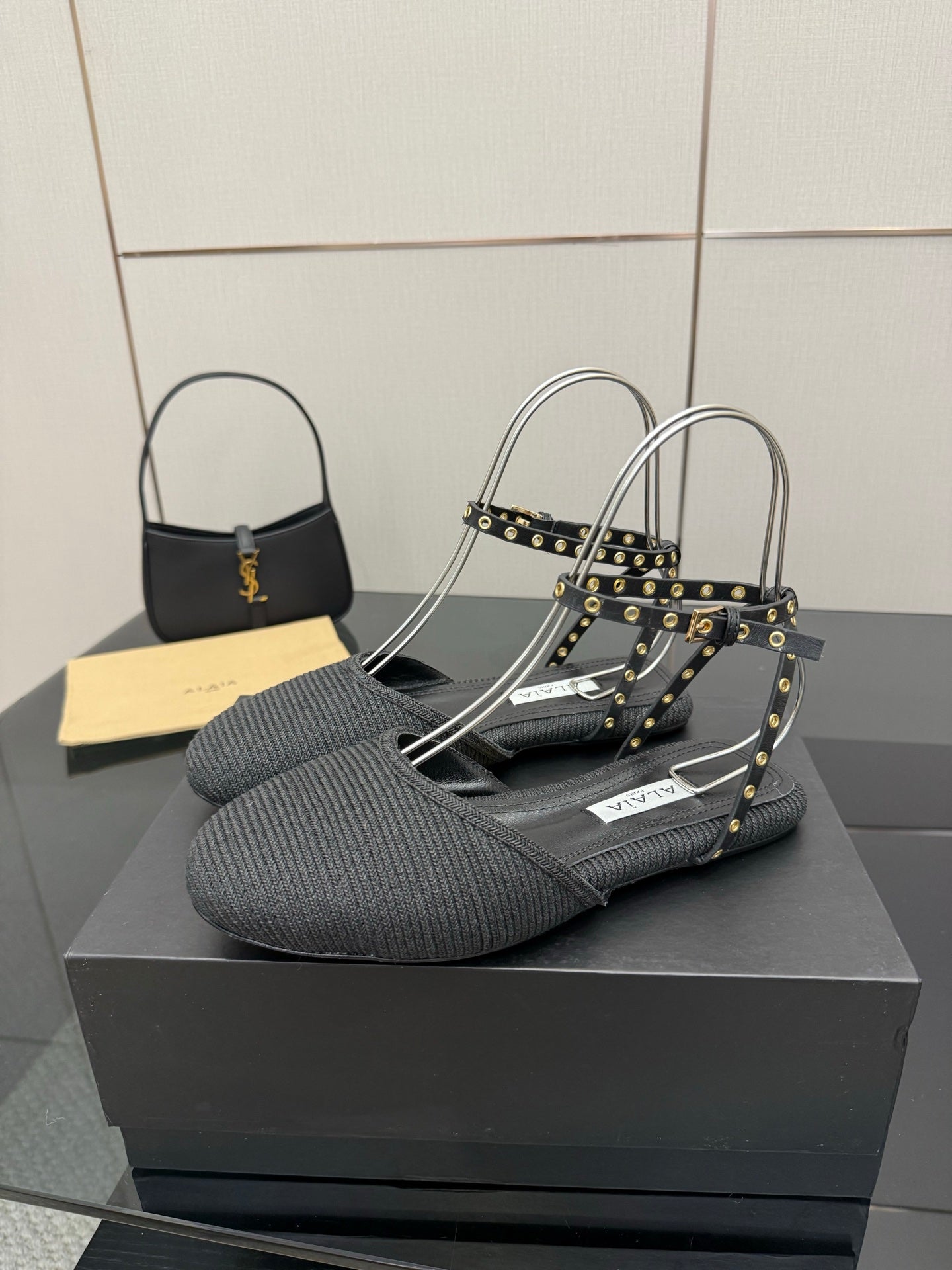 ALAIA flat slippers black sheepskin 389628