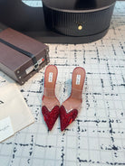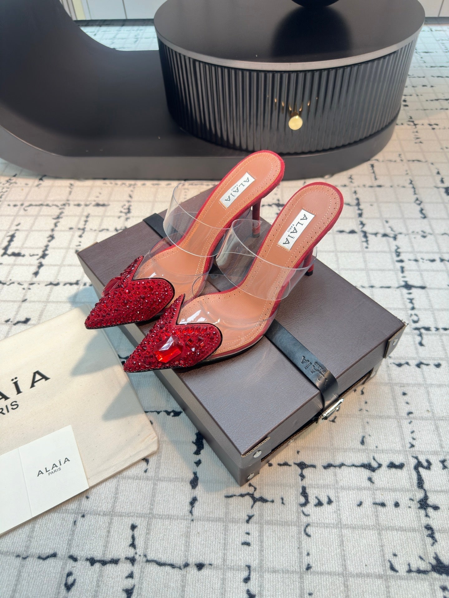 Alaia Heart With Crystals 90mm Heels Mules Red Sheepskin 800949