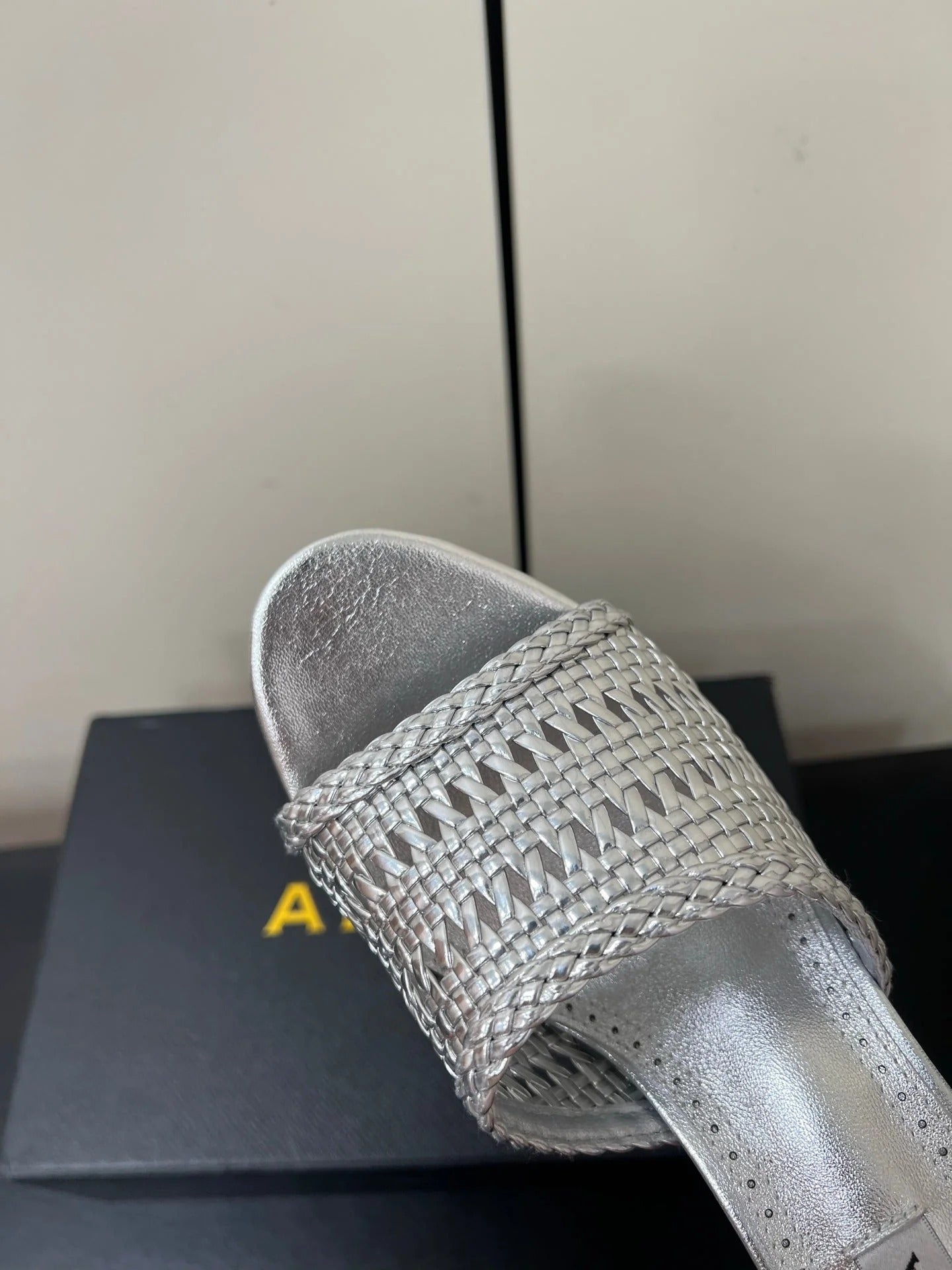 Alaia High Heel 25s 70 Mm In Silver Lambskin With Woven Pattern
