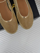 Alaia Mary Jane Ballet Flat Gold Lambskin 293237