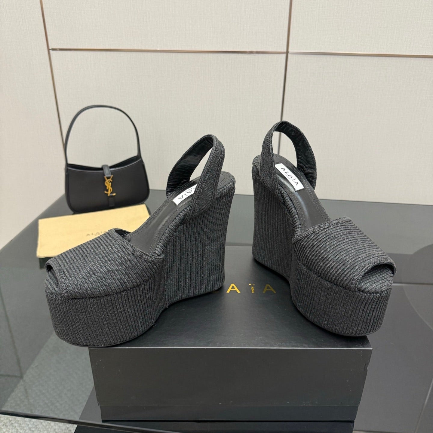 ALAIA platform sandal black sheepskin 389631
