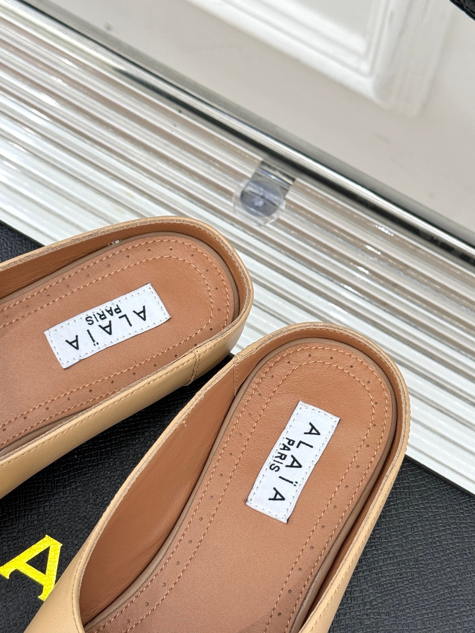 Alaia Slipper With Gold Hardware Light Apricot Calfskin 293198