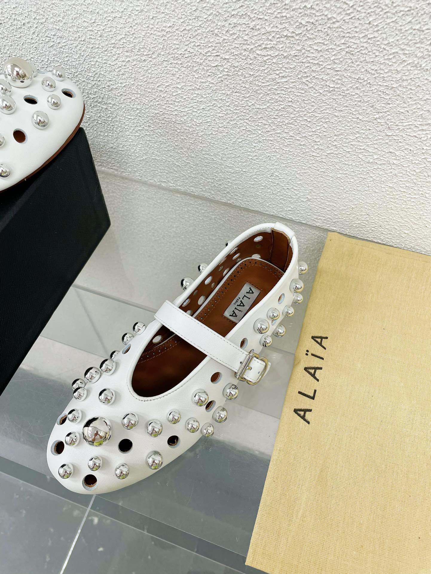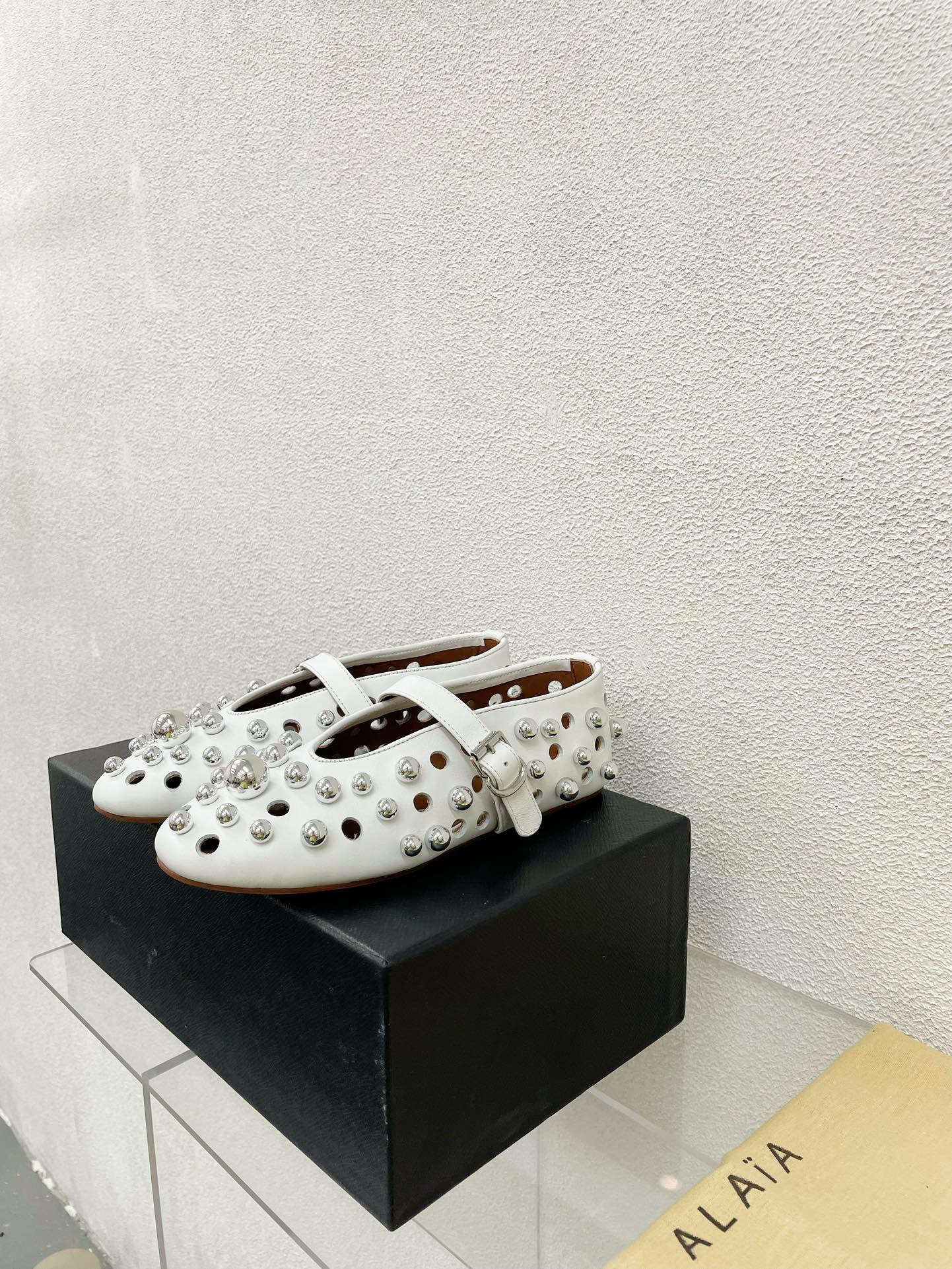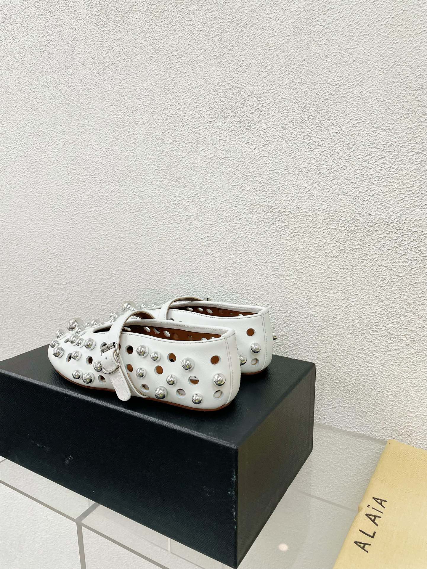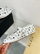 Alaila Ballet Flats In White Lambskin Beaded 897248