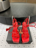 Alaila High Sandal 115mm In Red Mesh Fabric 954858