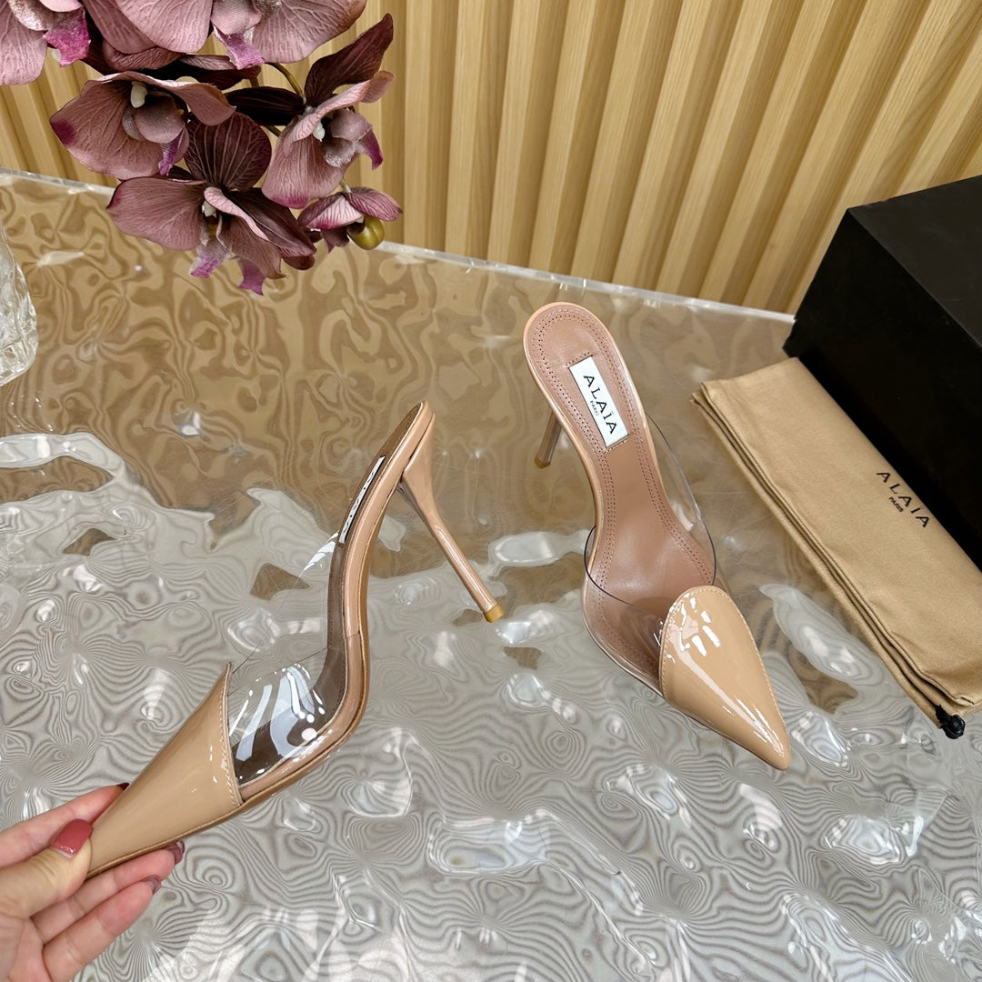Alaila Mule 100mm In Light Yellow Lambskin With Horse Hair 957211