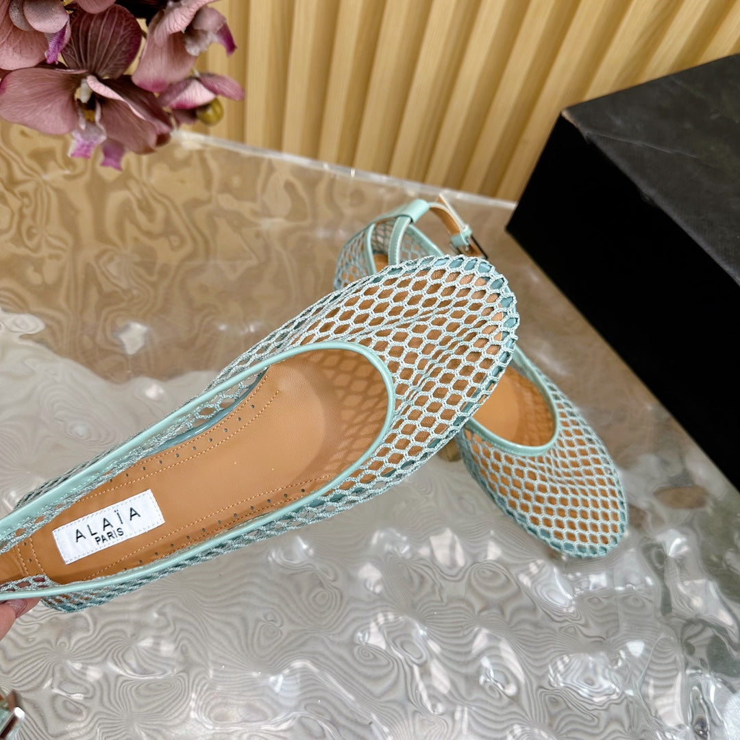 Alaila Mary Jane In Light Jade Green Mesh Fabric 996075