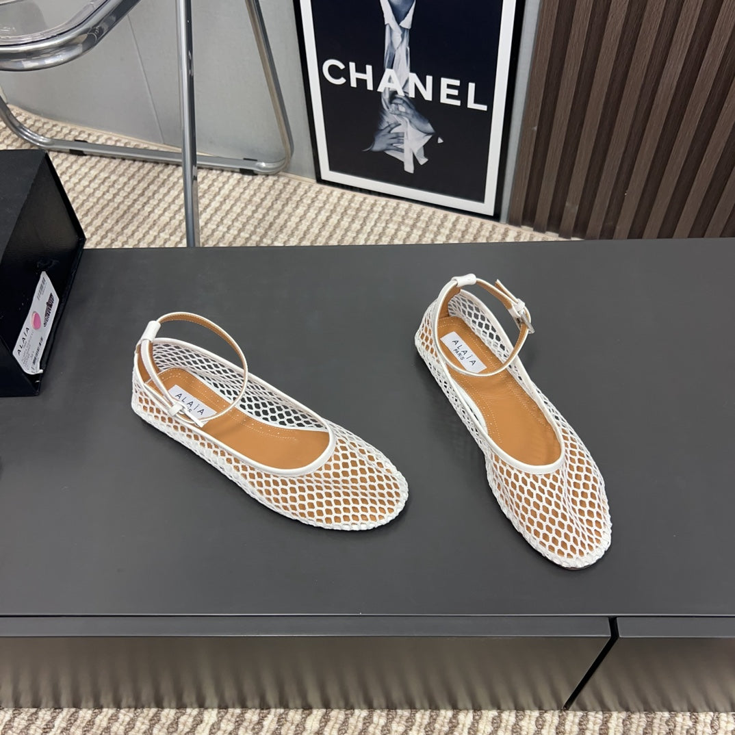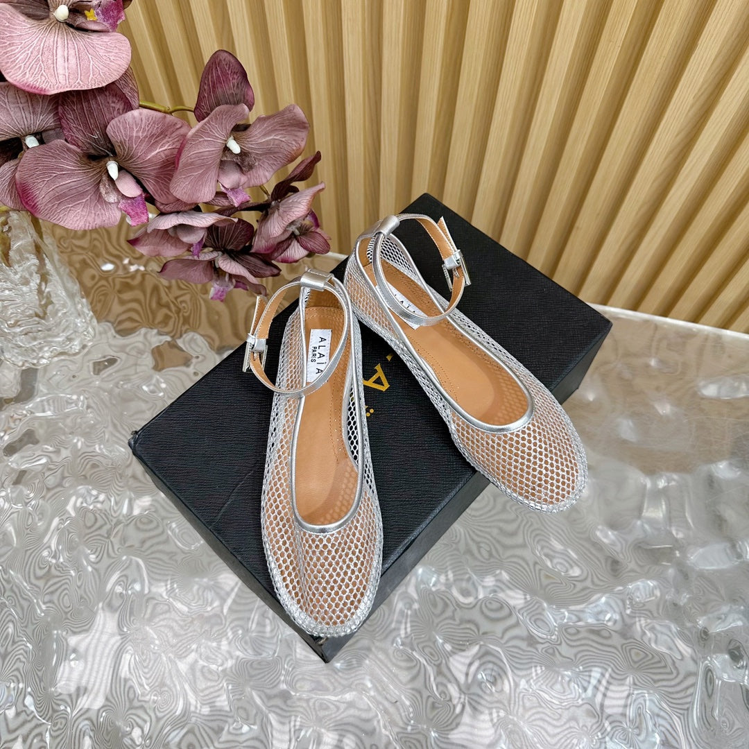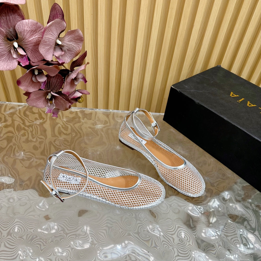 Alaila Sphere Ballet Flats In Beige Glossy Calfskin 964202