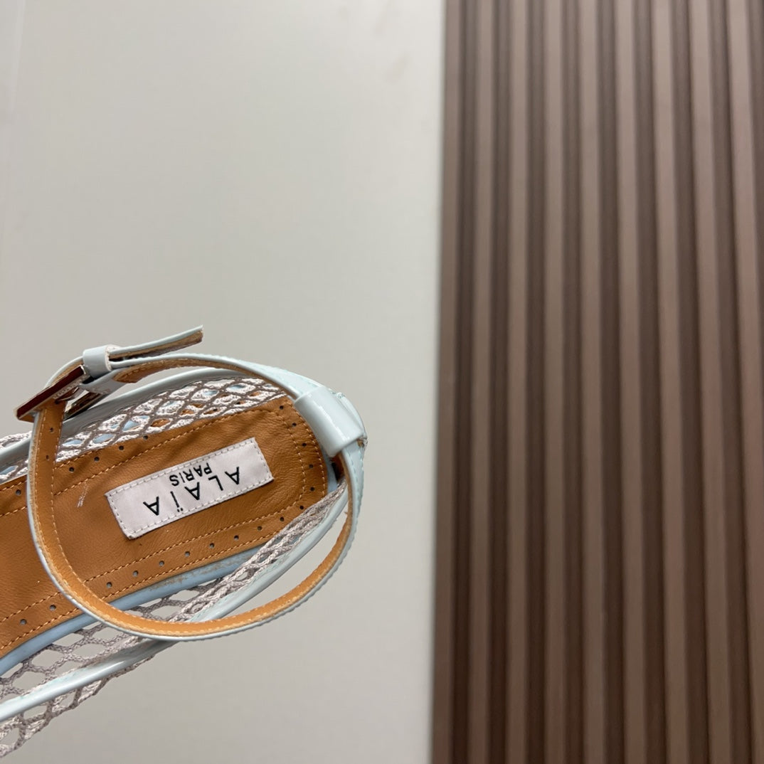 Alaila Wedge Sandals 115mm In Light Blue Glossy Lambskin 954883