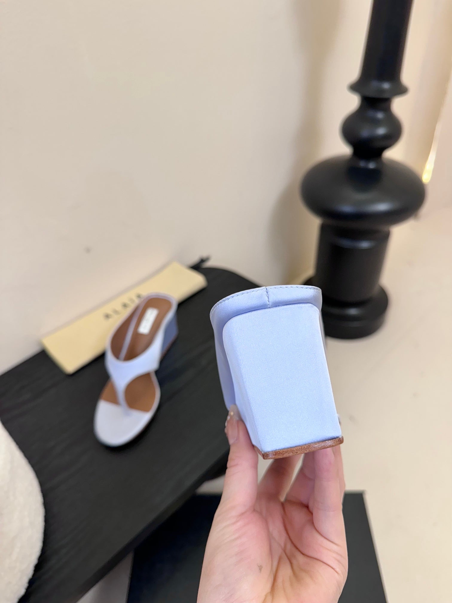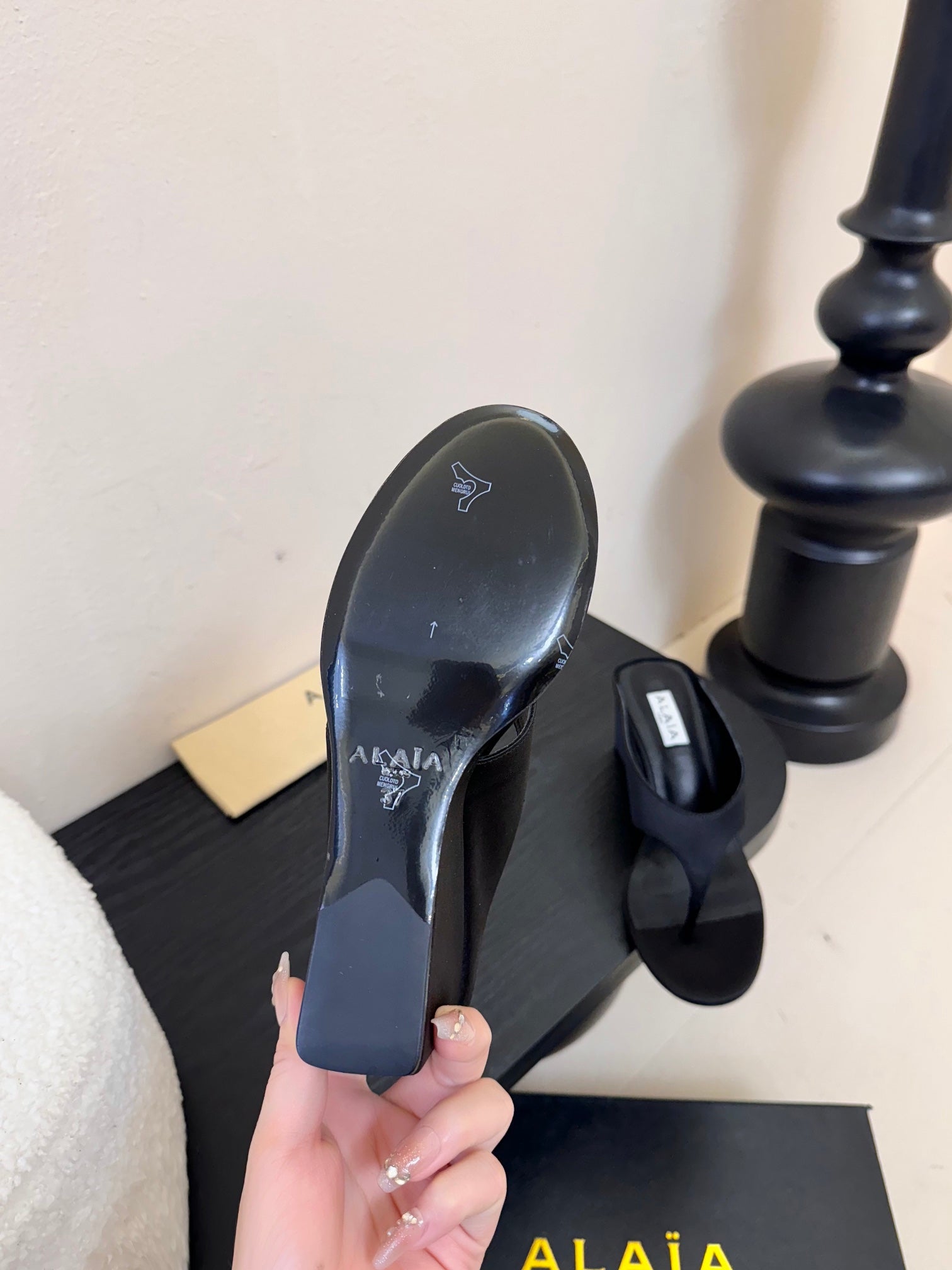 Alaia 25 Cube Thong Mules Black Satin Sheepskin 297039