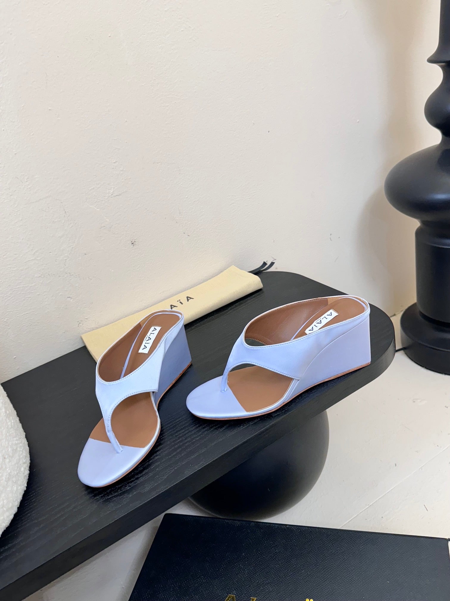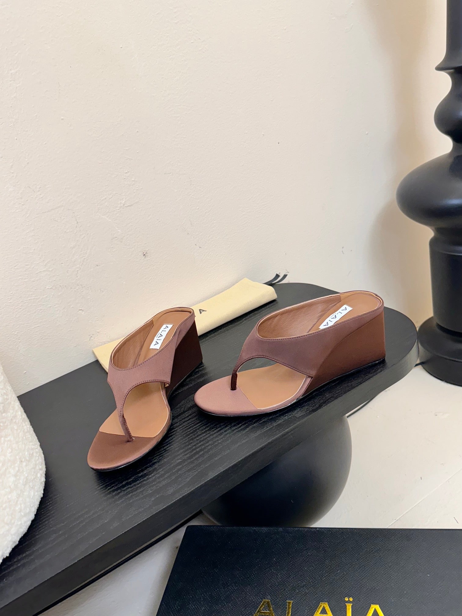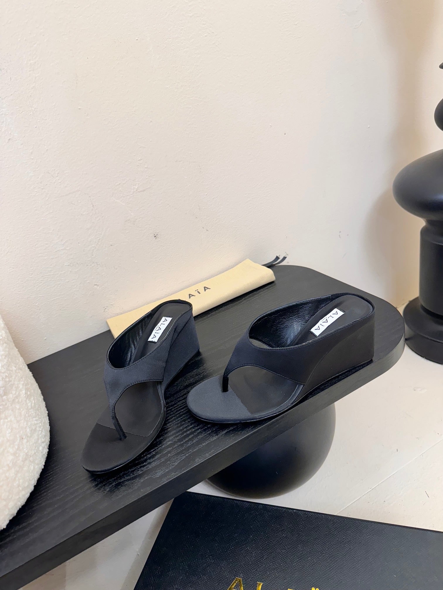 Alaia Wedge Thong Sandals 25s In Black Suede
