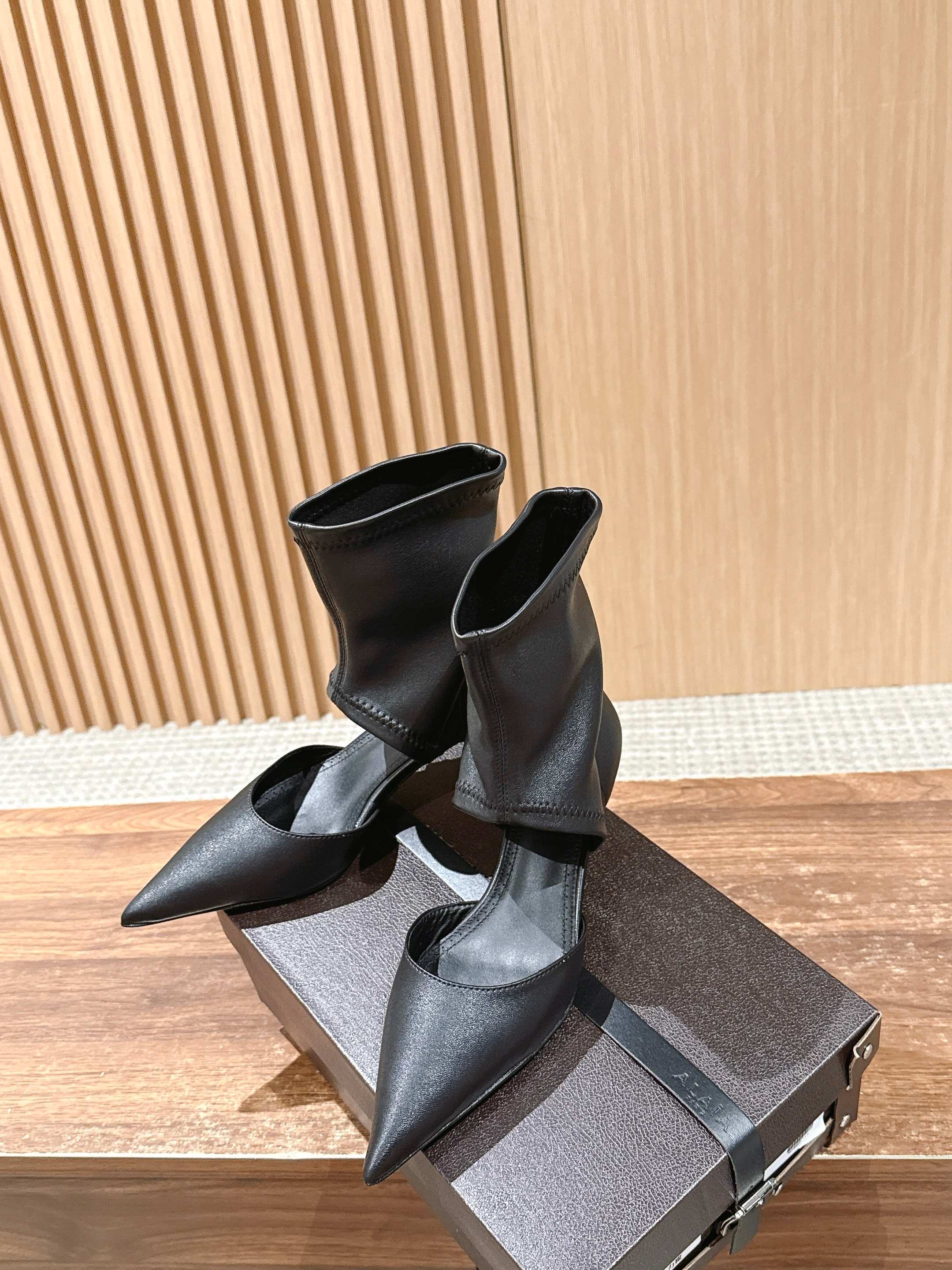 ALAIA high-heeled short boots black calfskin 386012