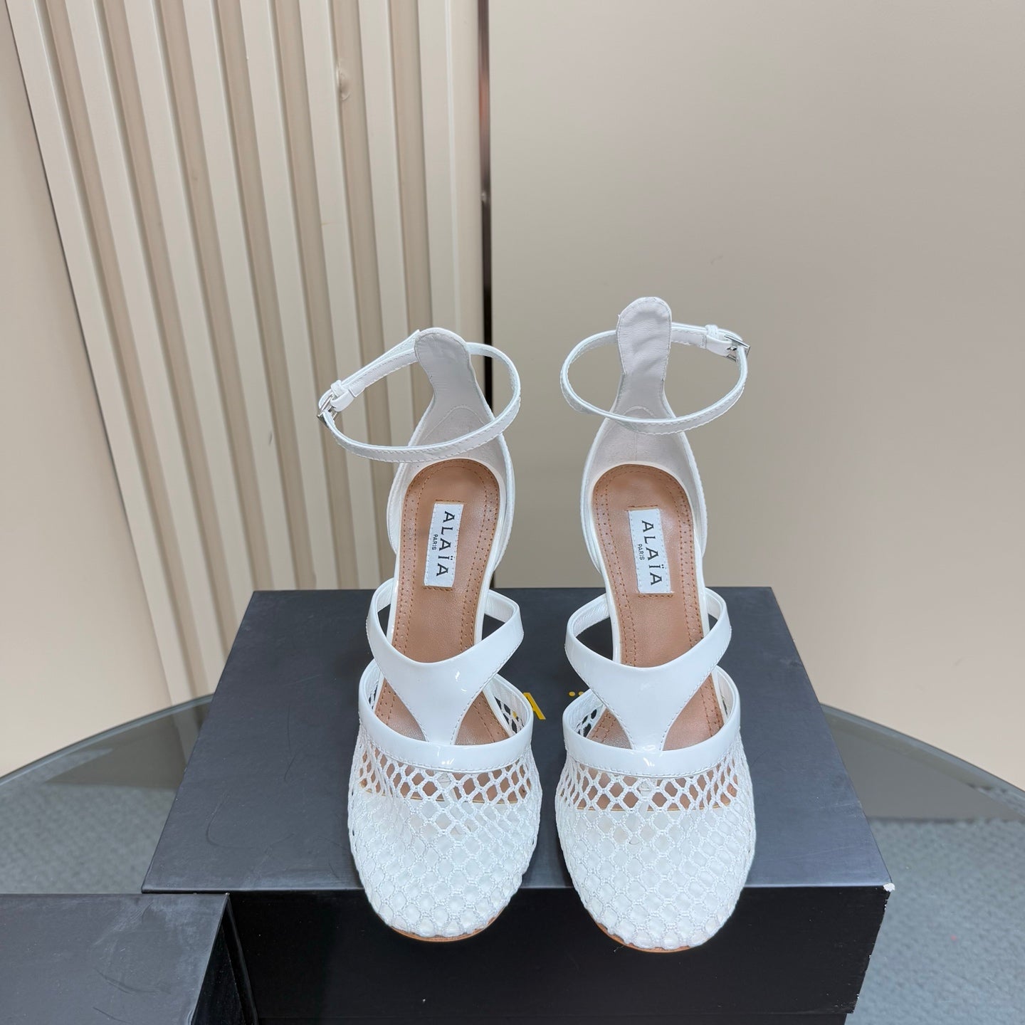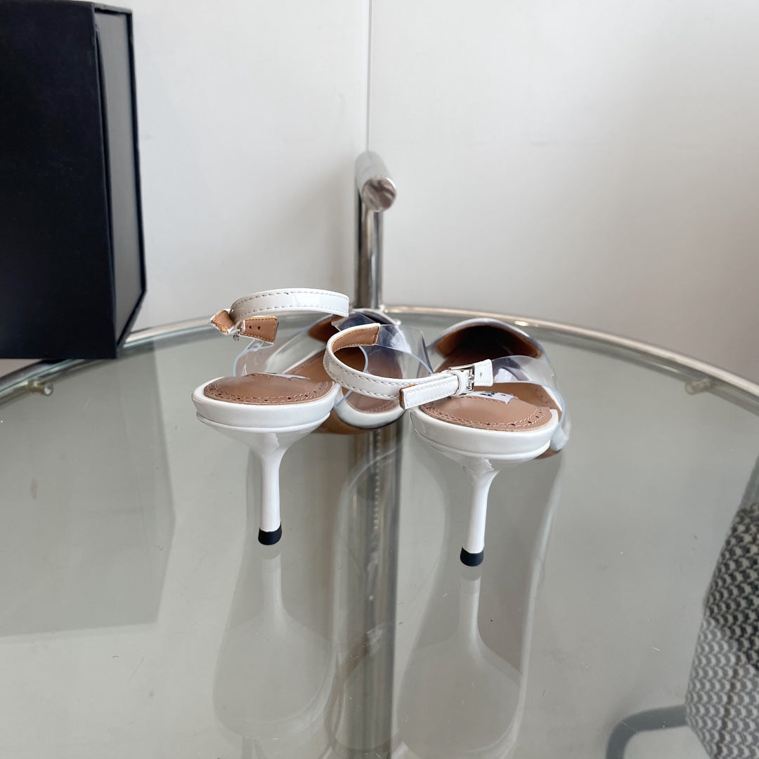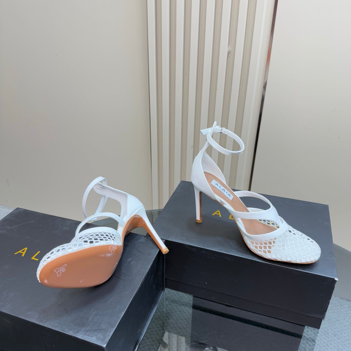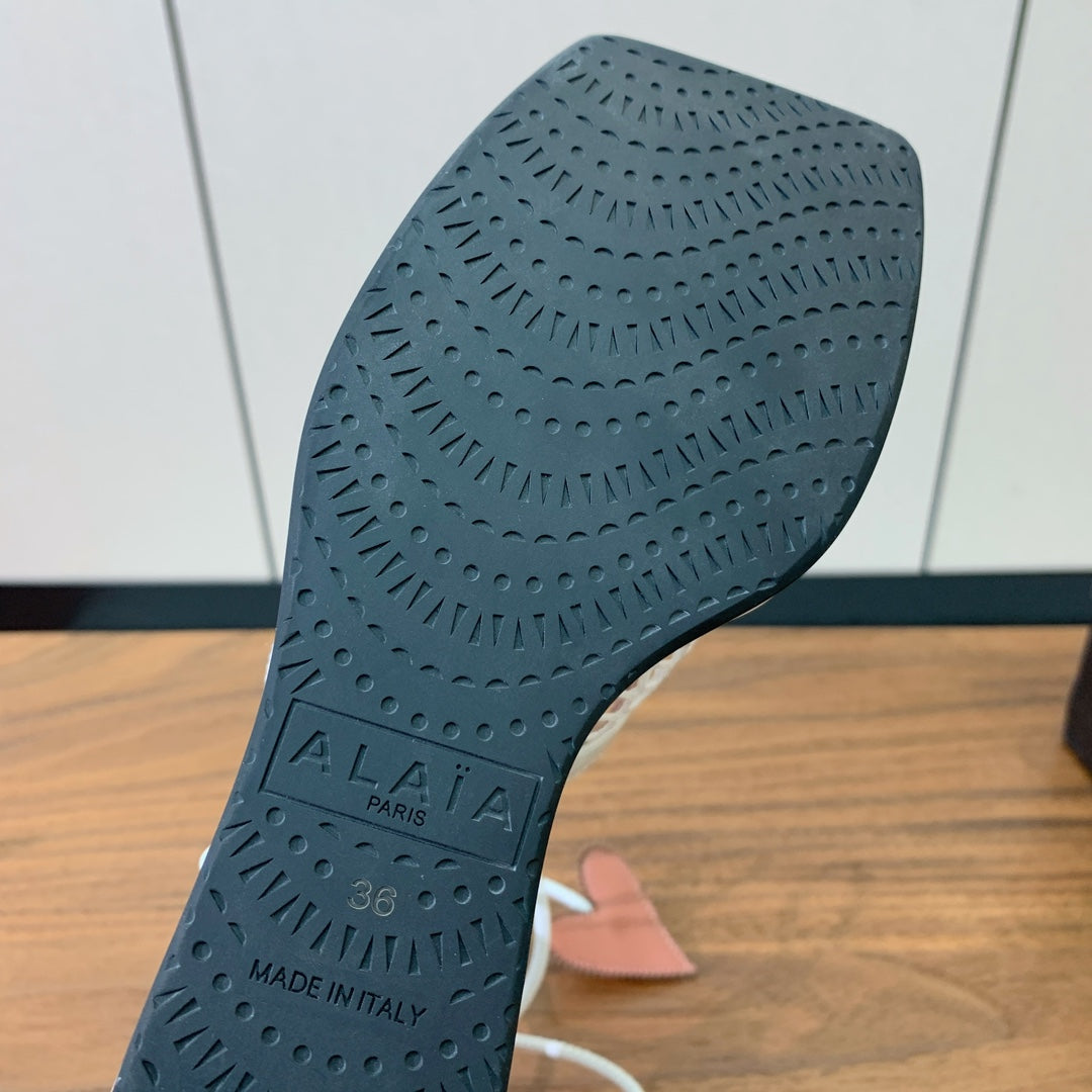 Alaia Fishnet Thong Heels Sandals White Lambskin 299659