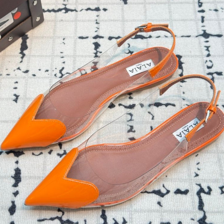 Alaia Heart Flat Slingbacks Orange Sheepskin 800941