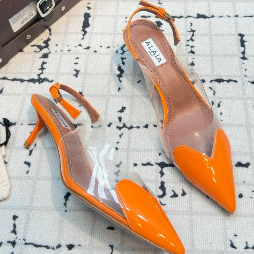 Alaia Heart 50mm Heels Slingbacks Orange Sheepskin 810210