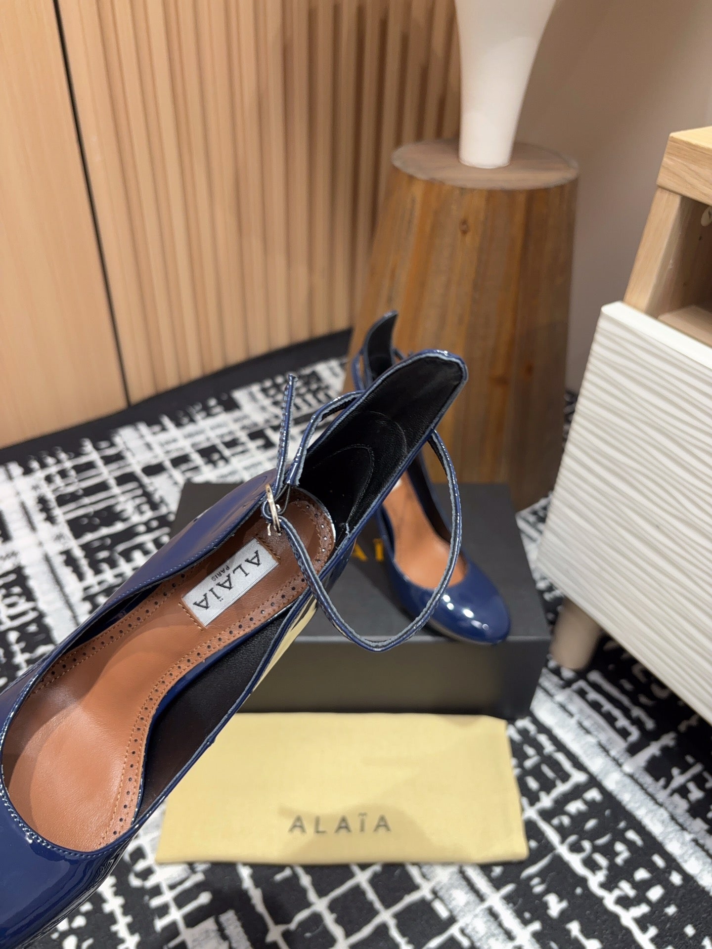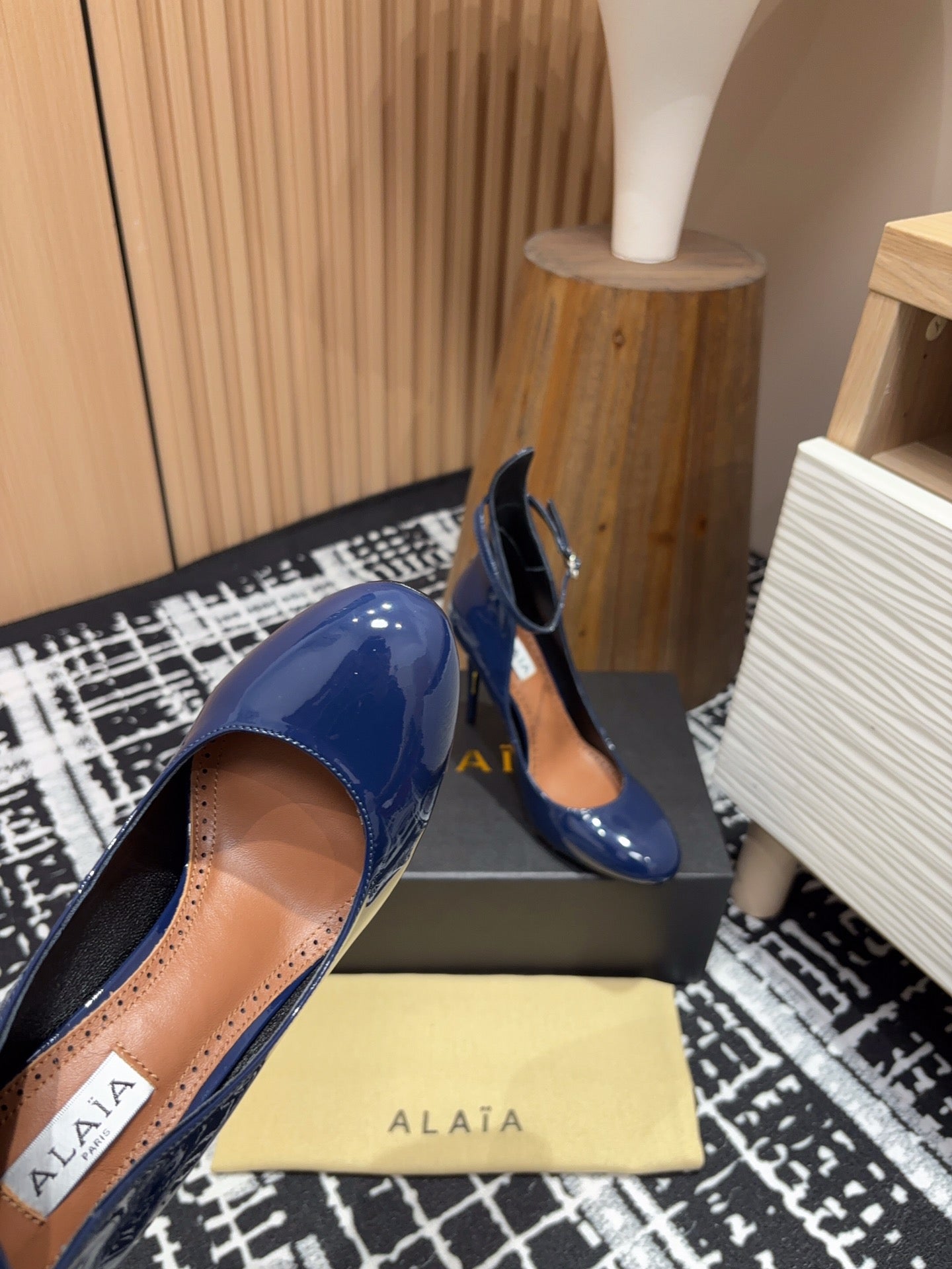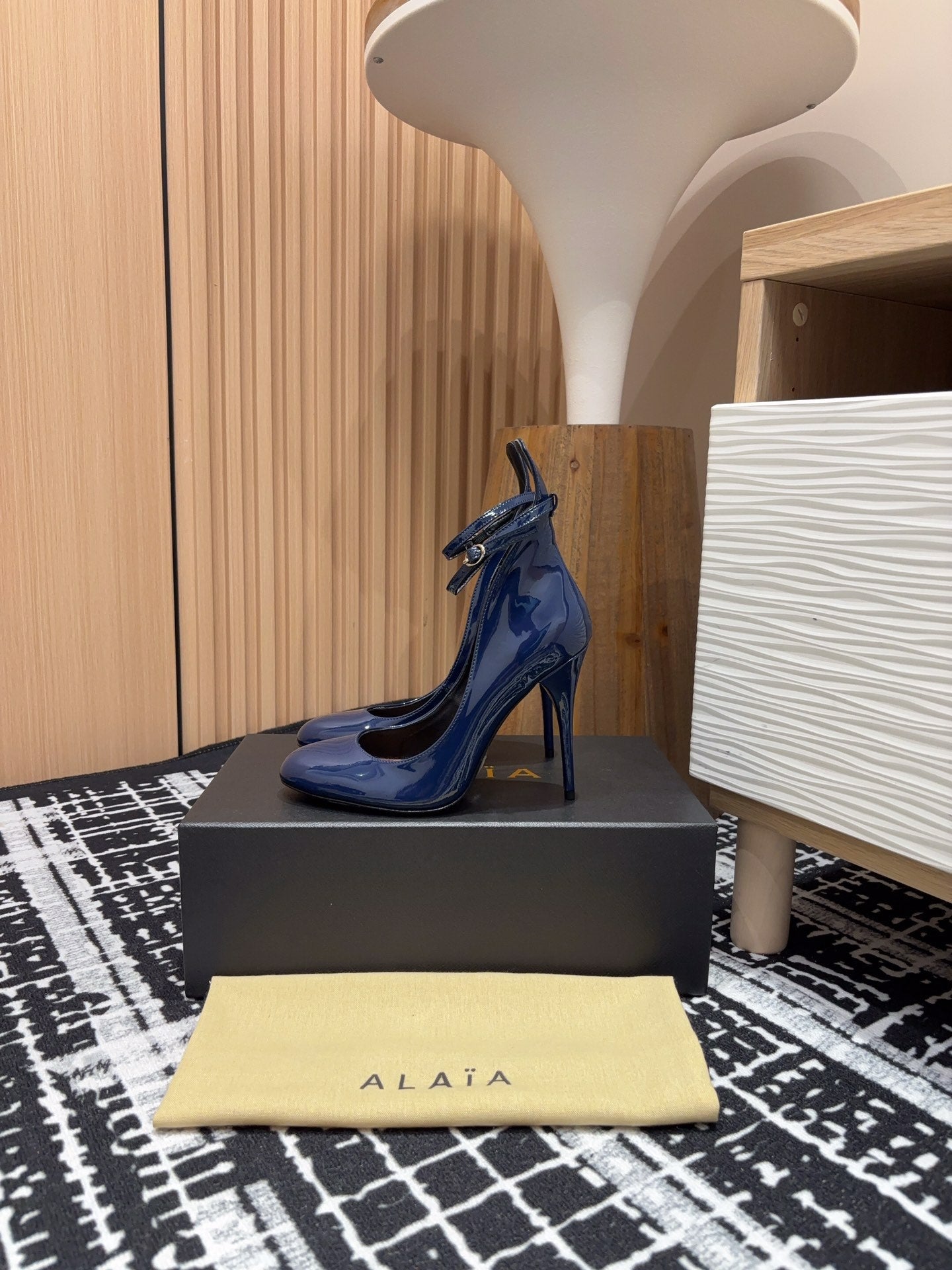 Alaia Decollete Pumps 105mm In Navy Blue Glossy Cowhide 121912