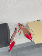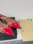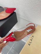 ALAIA LE COEUR FLAT SLINGBACKS IN CHERRY RED PATENT LAMBSKIN
