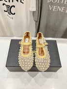 ALAIA PEARL MARY JANE SHOES IN LIGHT YELLOW MESH AND CALFSKIN
