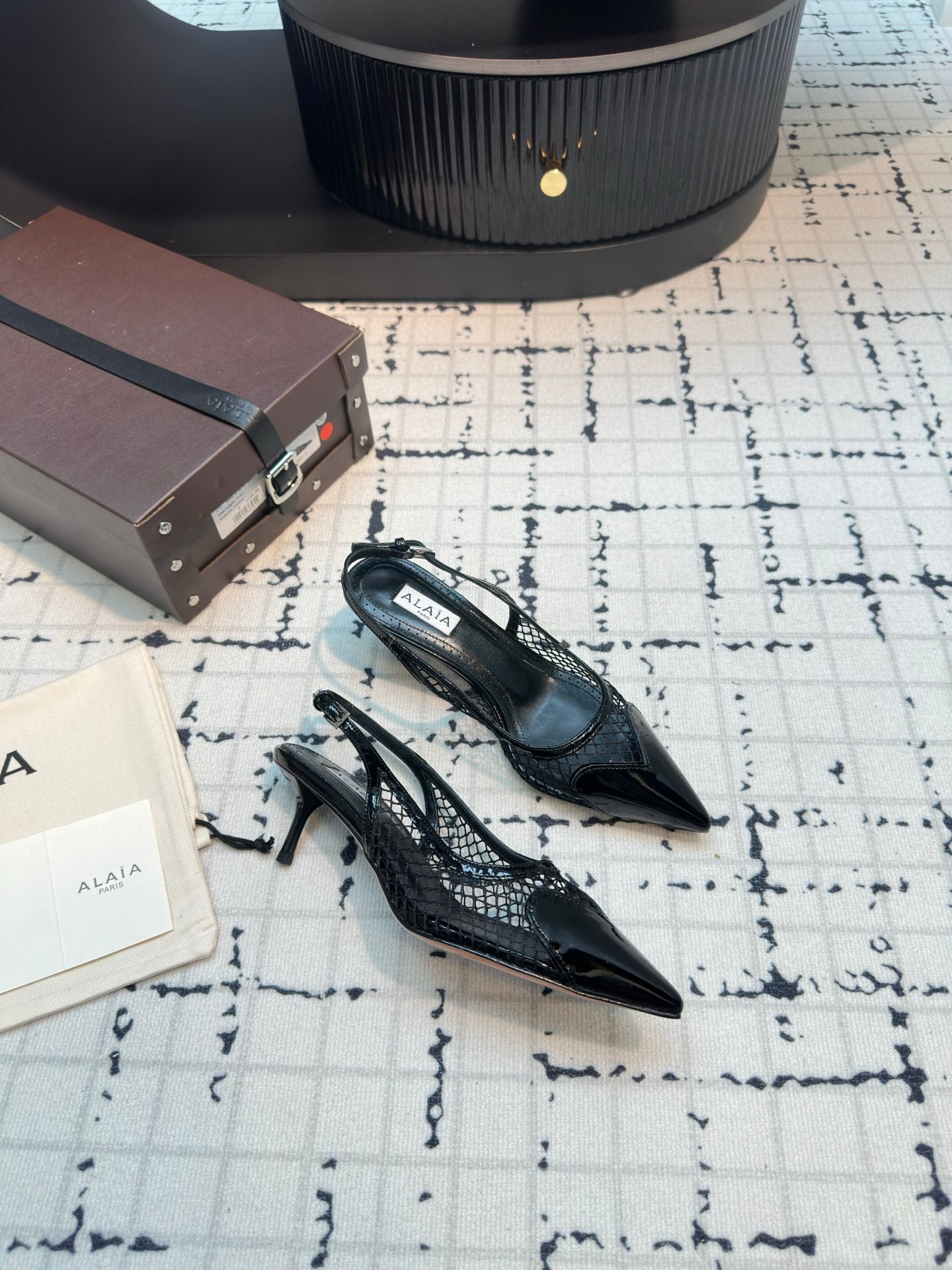 ALAIA SLINGBACKS 5 CM IN BLACK CALFSKIN WITH MESH