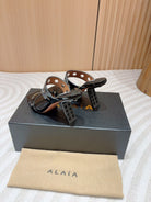 ALAIA TWO-STRAPS HIGH HEEL SANDALS IN BLACK PATENT LAMBSKIN
