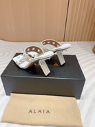 ALAIA TWO-STRAPS HIGH HEEL SANDALS IN WHITE PATENT LAMBSKIN