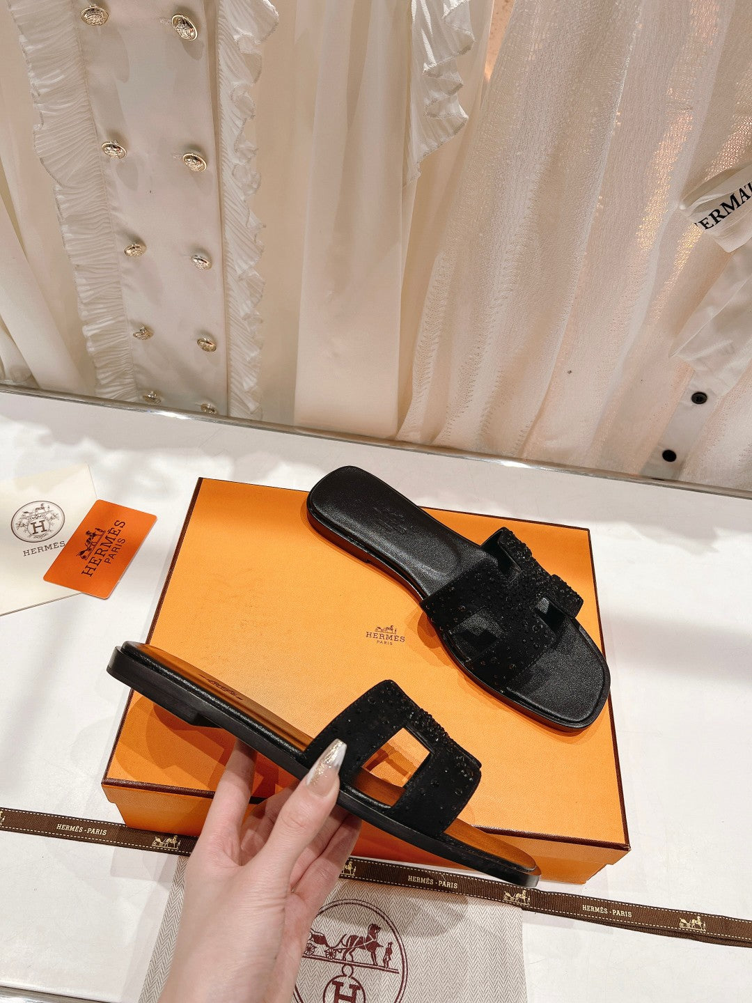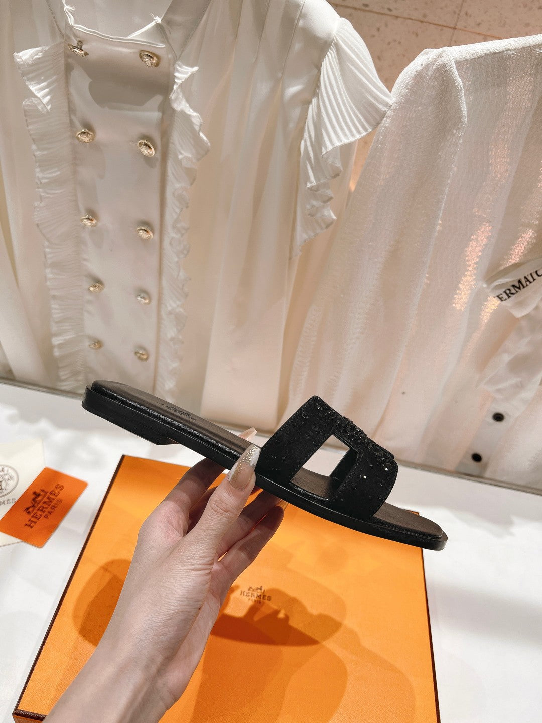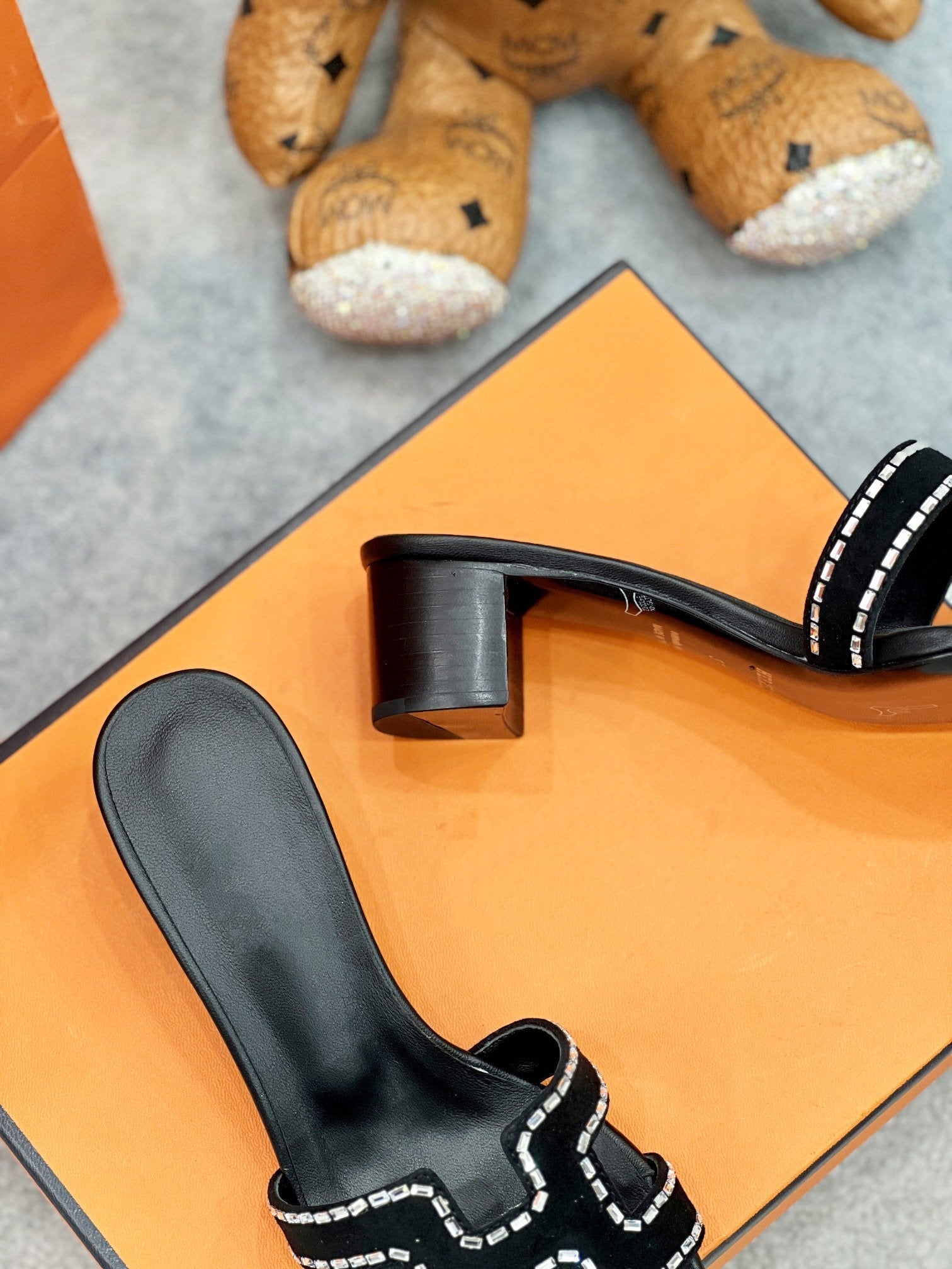 0RAN SANDAL BLACK LAMBSKIN ATTACH CRYSTALS