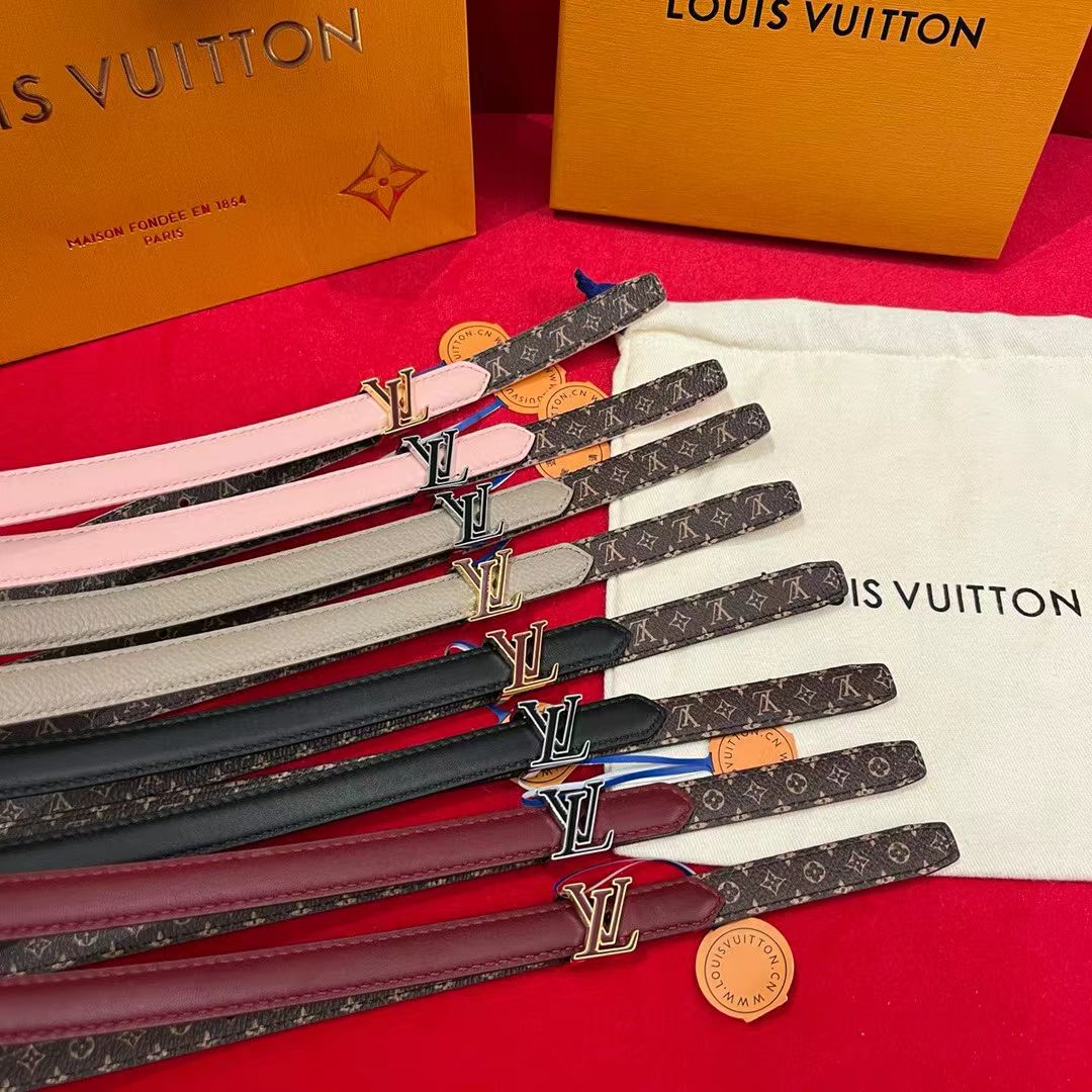 LV Slender Men Belt 35mm Deep Blue Embossed Monogram Leather Sliver HW